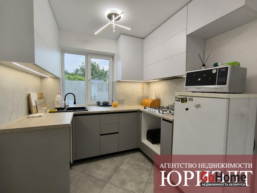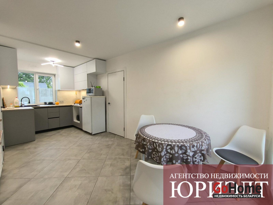 В доме сделан свежий ремонт преимущественно в белых и светлых тонах. Установлена металлическая входная дверь, современные межкомнатные двери, выполненный на заказ кухонный гарнитур и другая новая мебель.