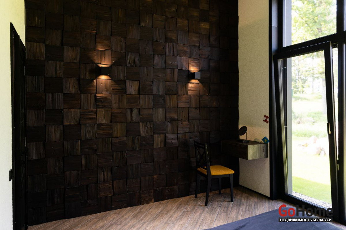 И огромная дизайнерская стена из дерева обожжёного по японской технологии.