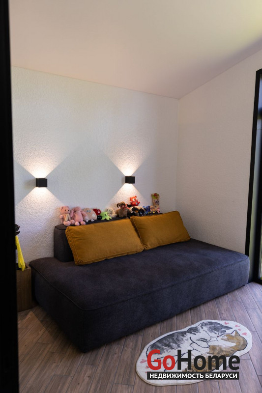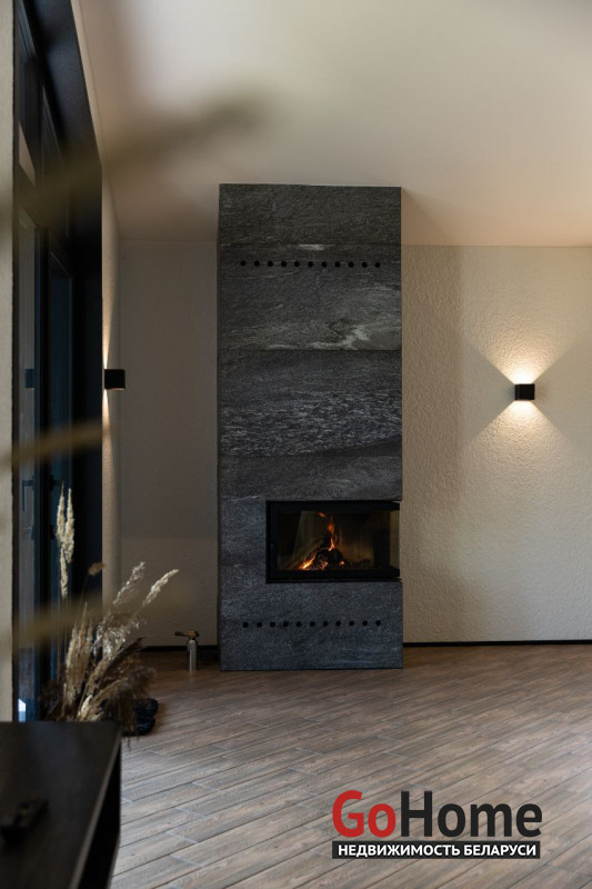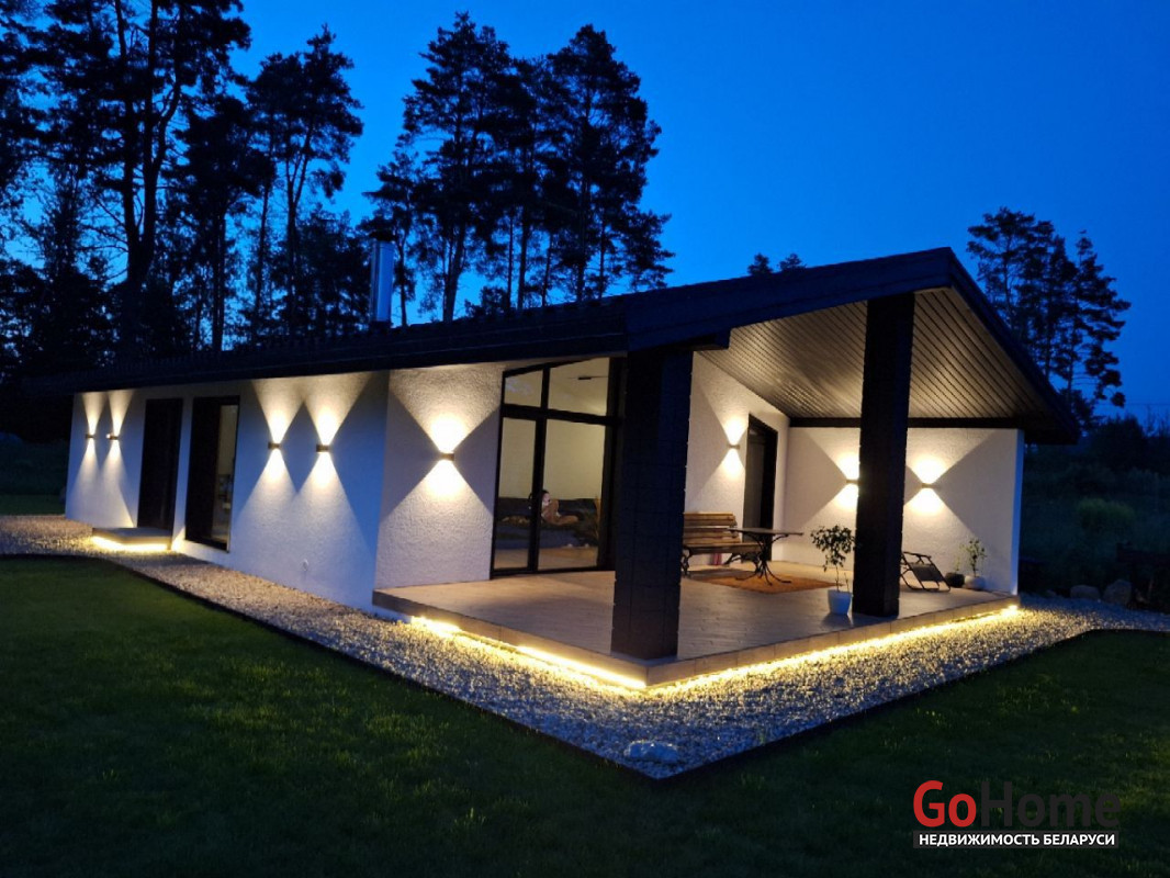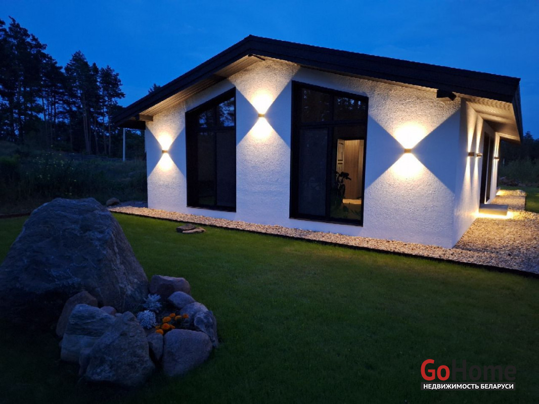 На входе в котельную комнату располагается электрощиток, использовался только медный кабель, во всех комнатах много розеток. В каждой комнате 2 источника света. В кухне/гостинной 4. На улице в разных частях дома располагается 3 разетки и 4 источника света на стенах дома и парящая ступень на веранде. При въезде на участок стоит датчик движения.