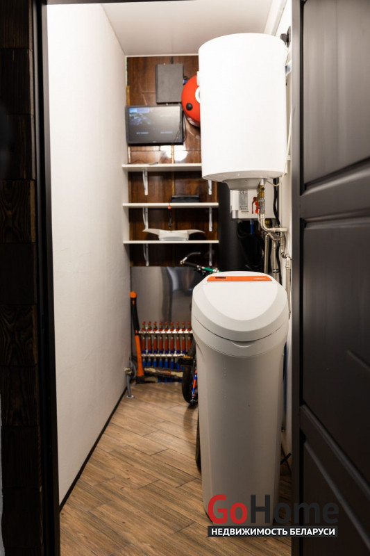 В доме водяной тёплый пол, обогревается европейским тепловым насосом Nordis. Насос очень экономичен в использовании, в самый холодный зимний месяц получилось 200р за отопление вс
