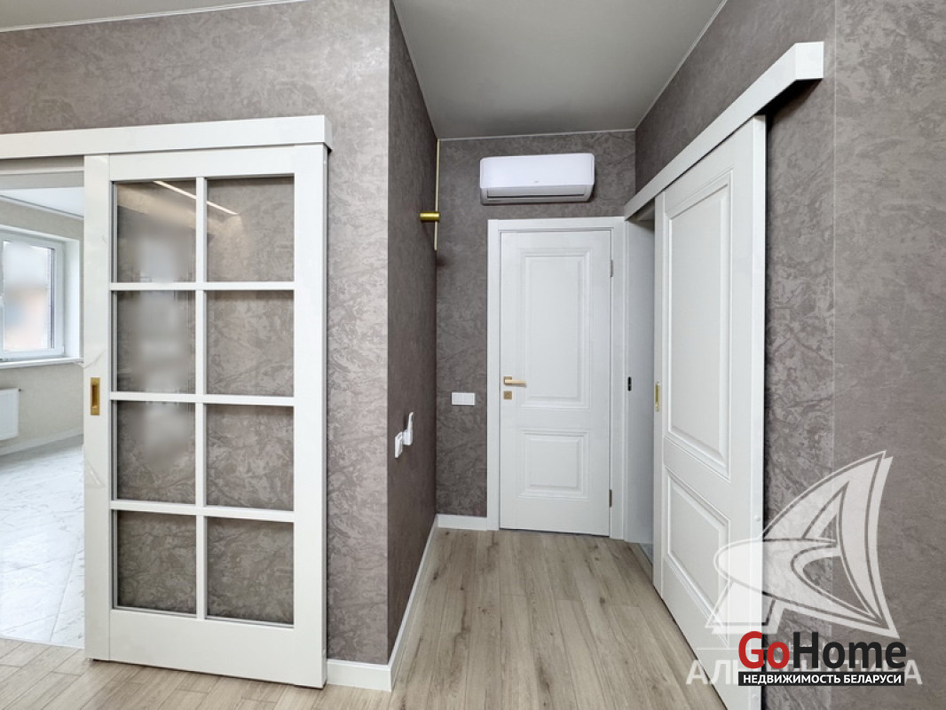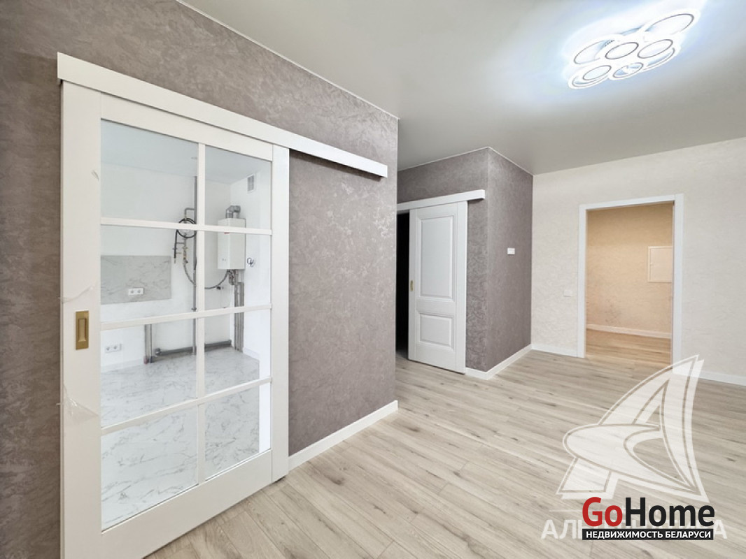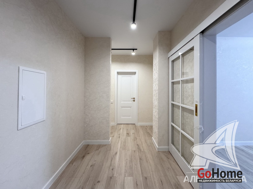 3-комнатная квартира, г. Брест, пр-т Республики, 2022 г.п., 3 / 5*6 блок, 92,6 / 84,4 / 65,5 / 14,2, санузел раздельный, две лоджии застеклены, входная дверь металлическая, потолки - натяжные матовые 2,75 м. с разноплановой системой освещения, стены оклеены обоями, полы - плитка (в кухне) и ламинат (в коридоре и комнатах), индивидуальное отопление (котел), система видеонаблюдения, домофон. Квартира с индивидуальными дизайнерскими решениями. Чистый подъезд. Тамбур на три квартиры. На площадке имеется закрытое место для колясок и велосипедов. Во дворе игровая детская площадка, парковка для автомобилей. Есть своя закрытая территория. Лот - 251682