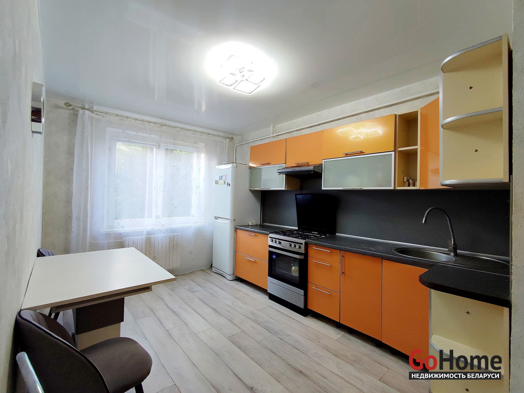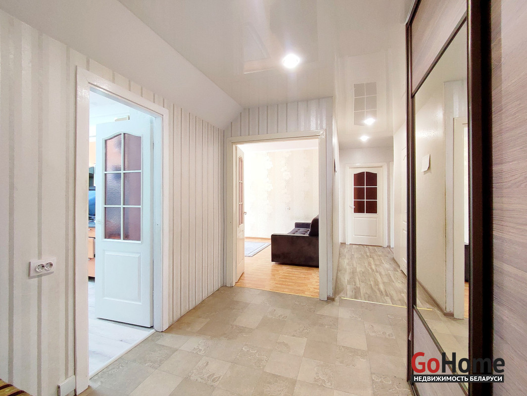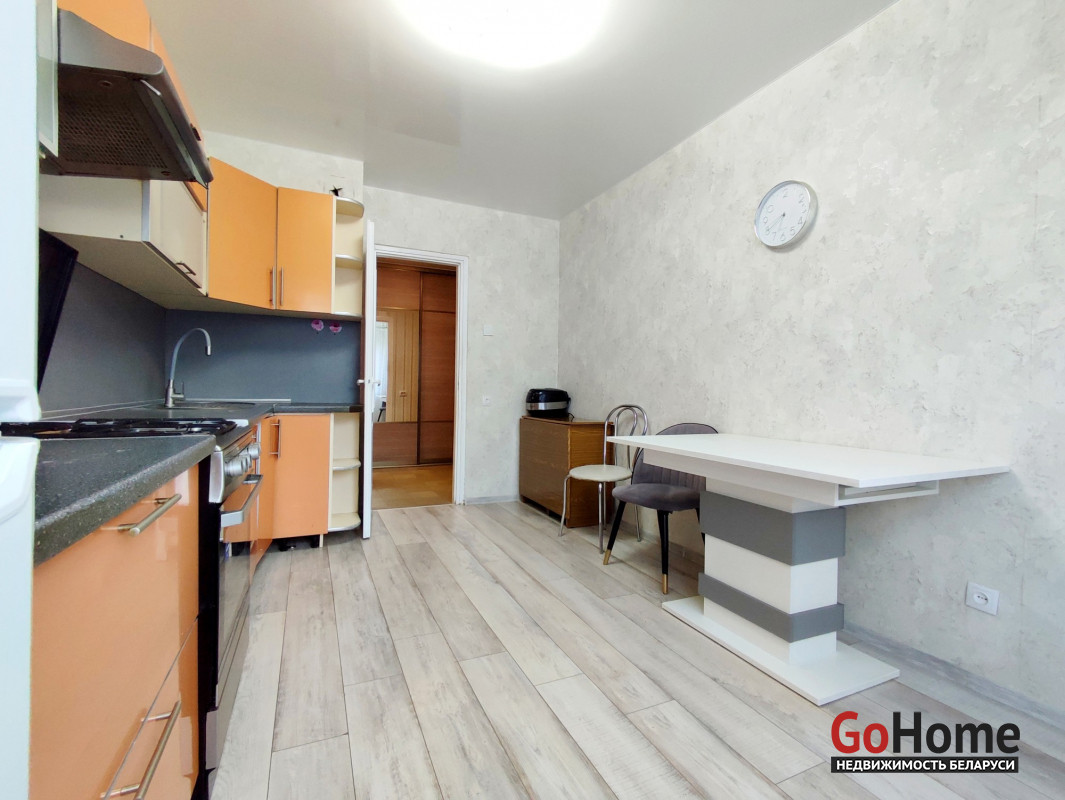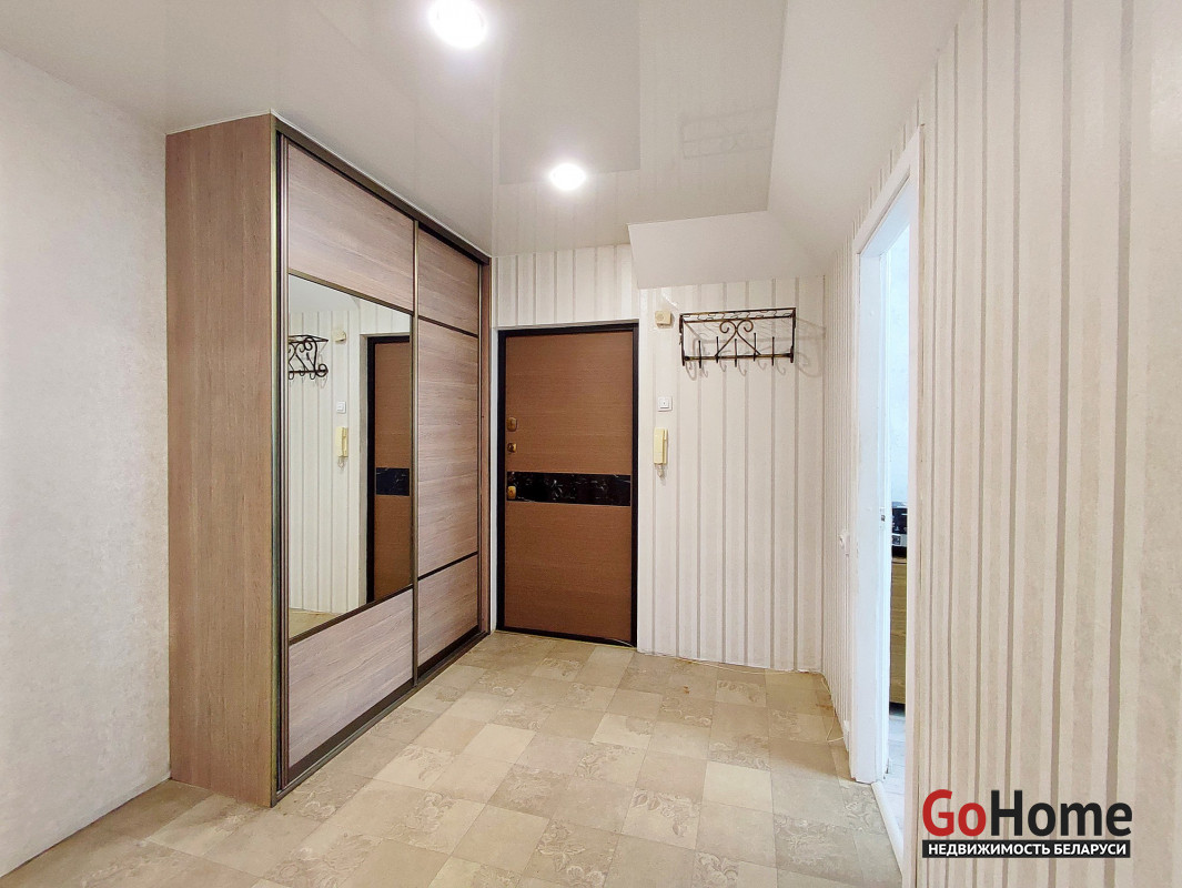 В просторной кухне 12,0 м2 сделан свежий ремонт. Функциональный кухонный гарнитур с современной фурнитурой. Для вашего комфорта остается вся мебель и бытовая техника по согласованию. Вместительный шкаф купе в прихожей.