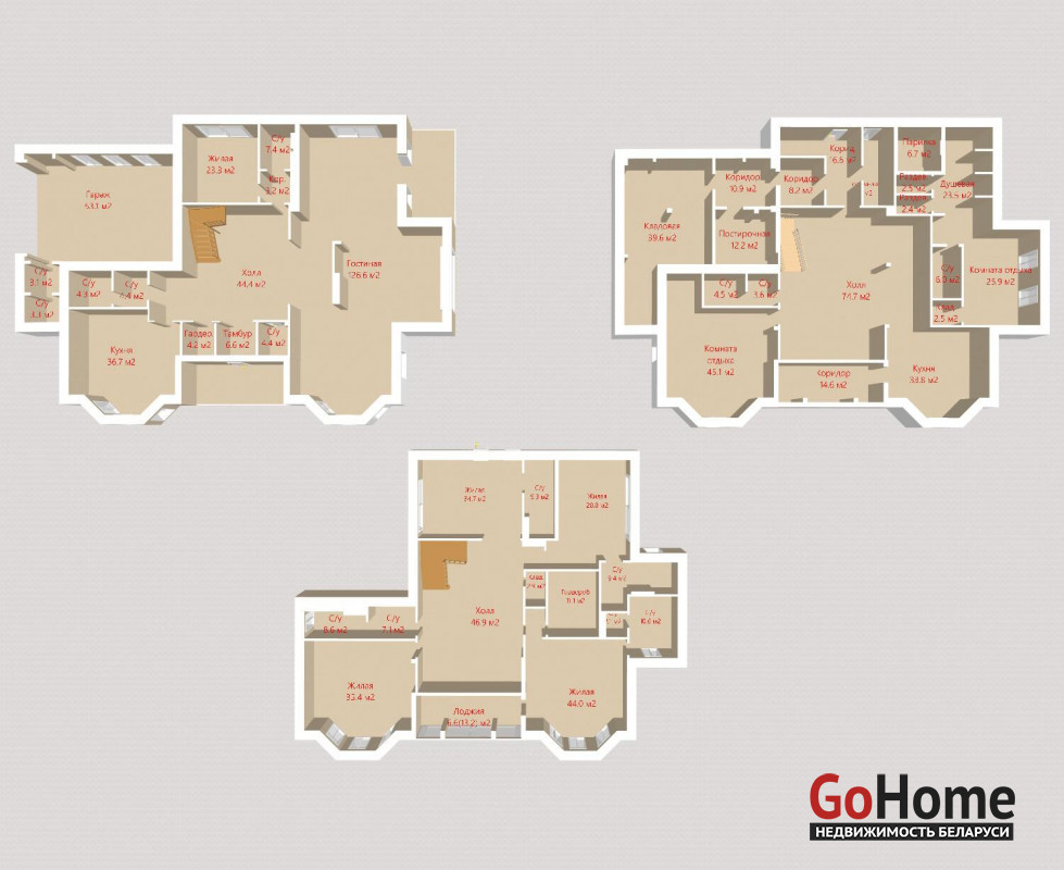Комплекс, площадью 1100 м.кв., включает 3 здания: