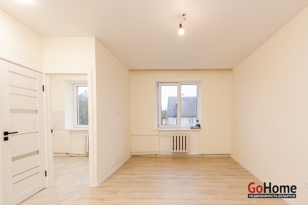 2-комнатная квартира с новым ремонтом, все окна ПВХ, новая входная металлическая белорусская дверь. Все полы новые, залиты частично стяжки, сделана вся новая штукатурка. Стены выровнены. Положен ламинат высокого 33 класса с 4-сторонней фаской. Сделаны натяжные потолки со скрытыми карнизами. Двери установлены из массива белорусского производства. В санузле установлена новая сантехника, бойлер на 80 литров. Слева от кабины оставлено место для установки стиральной машинки и умывальника над ней- все выводы сантехнические подготовлены для этого. В доме был произведён капитальный ремонт фасада и крыши. Бетонное перекрытие между этажами. Тихий спокойный двор. В подъезде всего восемь квартир, спокойная приятные соседи. К квартире относится дополнительно большой капитальный сарай для хранения ваших вещей. В квартире никто не прописан. Пишите в сообщения или звоните, договоримся о просмотре.