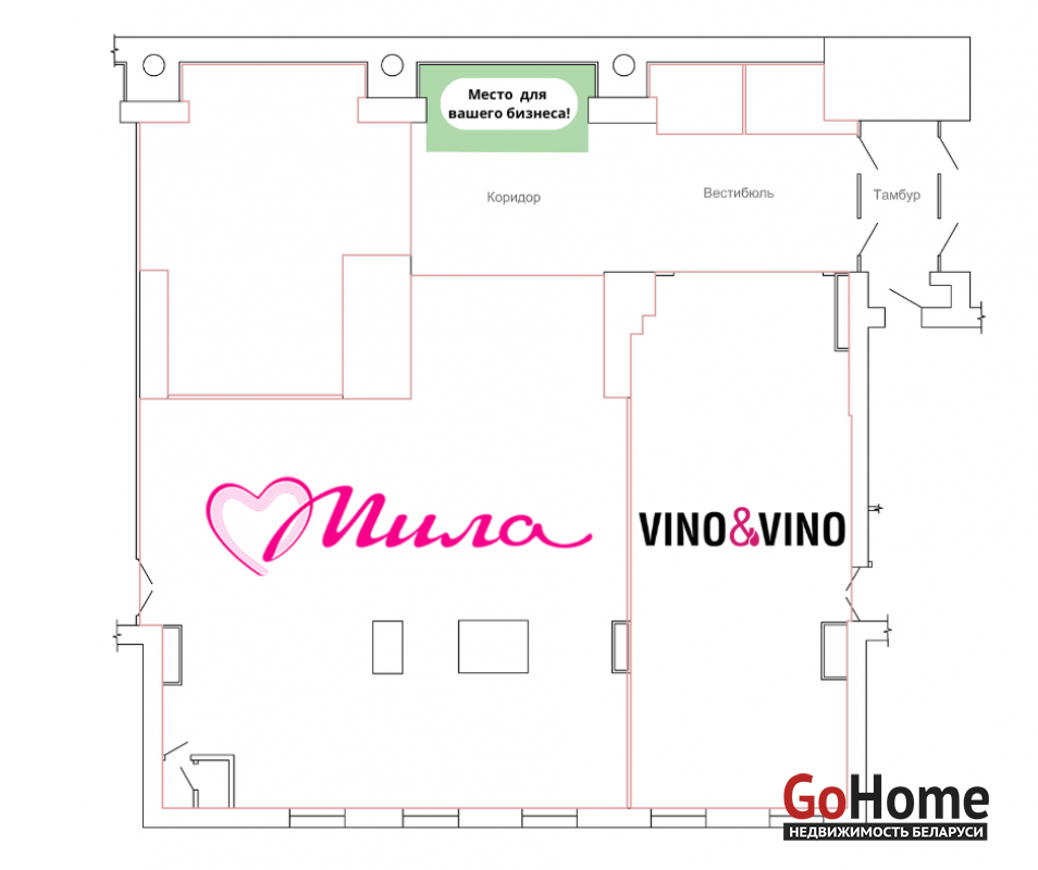 Сдается в аренду место под торговый островок. Возможная площадь от 5 до 20 кв.м. Один тамбур с магазинами «Мила», «Vino&Vino», «Индюшонок» и прикассовой торговлей. Помещение с витринными окнами, выходящими на проспект Независимости. Расположено в 100 метрах от станции метро «Уручье» и остановок общественного транспорта, в линейке стрит-ритейла рядом с продуктовыми магазинами, сэконд-хэндом,, аптекой, магазином книг, кафе и другими объектами торговли. В помещении выполнен ремонт (потолок ARMSTRONG, стены под покраску, на полу керамическая плитка), оборудован санузел.