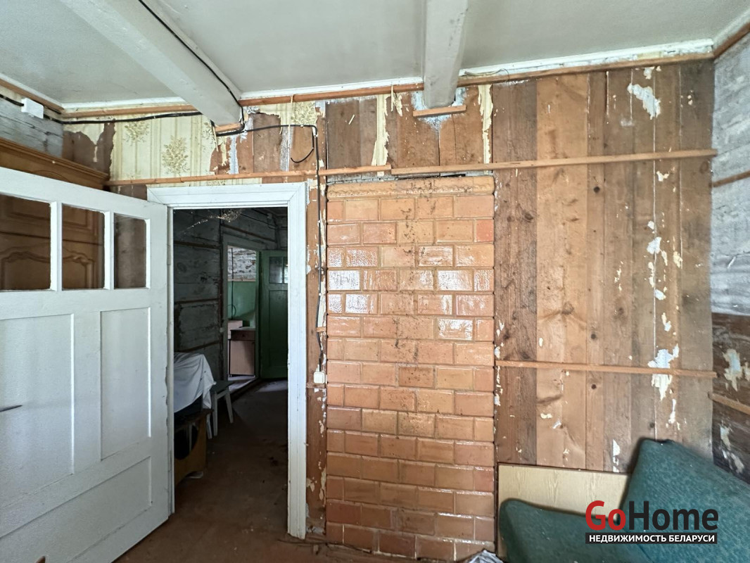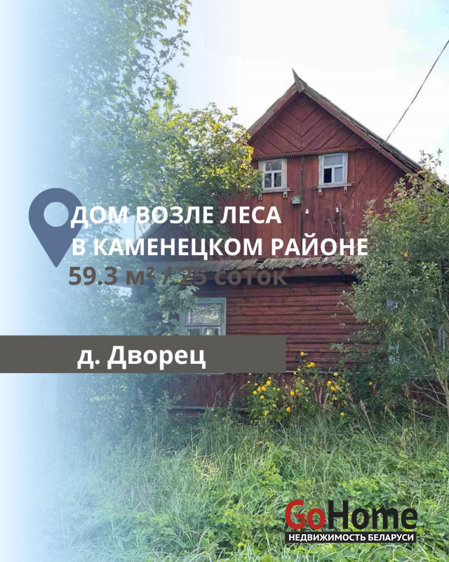 Продается дом в деревне Дворец Каменецкого района, построенный на бетонном фундаменте с брусовыми стенами и шиферной крышей. Общая площадь составляет 59,3 м2, из которых жилая площадь — 25,3 м2, а кухня-столовая занимает 15,6 м2. В доме есть электричество, печное отопление и газ в баллонах. Он включает две жилые комнаты, кухню и кладовую, в которой планировалось обустройство санузла: уже уложена плитка на пол и сделана разводка труб. Внутри дома проведена новая электропроводка, а высота потолков достигает 2,88 м.