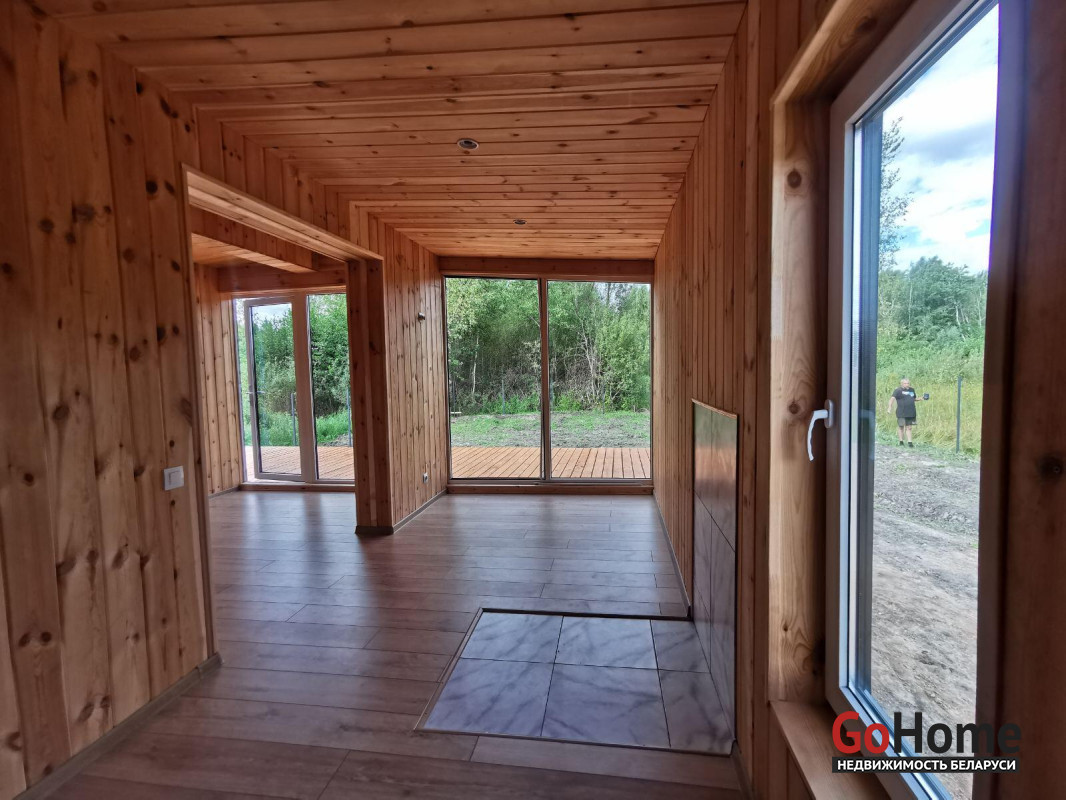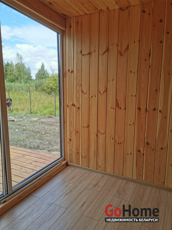 Продается современный дом дачного типа, построенный в 2025 году, общей площадью 40 кв. м, из которых жилая площадь составляет 15 кв. м, а кухня — 10 кв. м. Дом выполнен из металлического каркаса, утеплен минеральной ватой и обшит имитацией бруса как снаружи, так и внутри. Внутри уложен ламинат, а также разведены сантехника и электрика, подключения к центральным сетям пока нет — работы по подключению электричества начнутся через месяц.