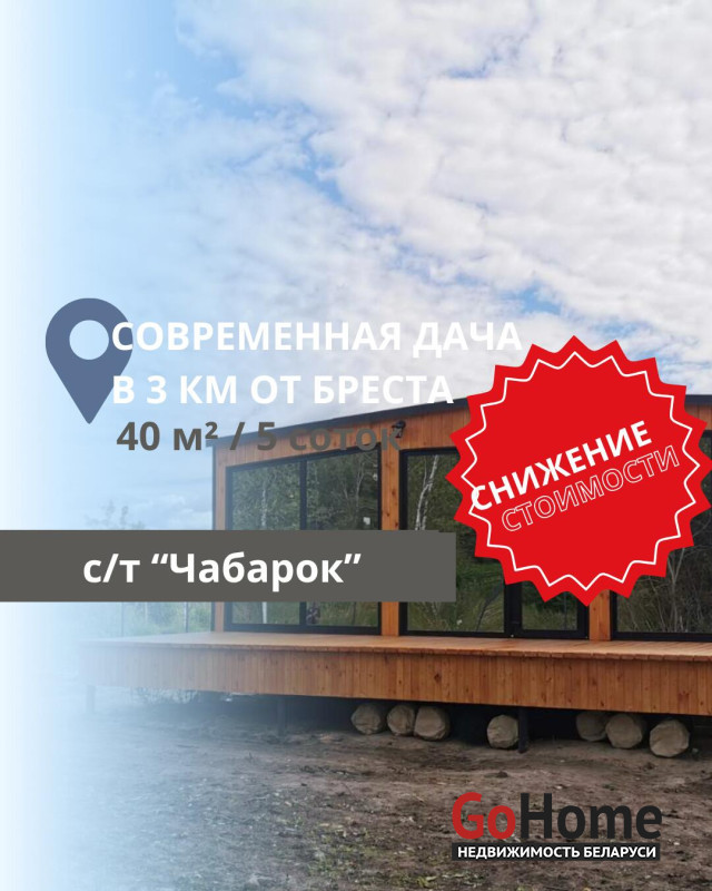 Участок огорожен забором и окружен соснами, создающими уютную атмосферу и обеспечивающими уединение. Дом расположен в тихом живописном месте в садовом товариществе Чабарок, всего в 3 км от города Бреста. Здесь нет соседей, что гарантирует спокойствие и прекрасный вид из окон.