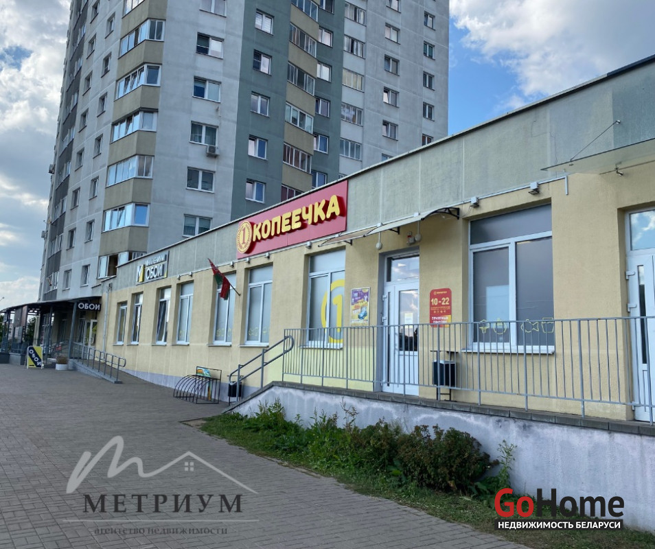 Помещение находится на первом этаже многоэтажного дома в жилом районе на перекрестке ул. Алибегова и ул. Янки Брыля. Помещение в линейке стрит-ритейла рядом с магазинами запчастей, мясным магазином, кофейней и другими объектами торговли. За зданием оборудована парковка. В 100 метрах от входа располагаются остановки общественного транспорта с высоким пассажиропотоком (19 регулярных маршрутов).