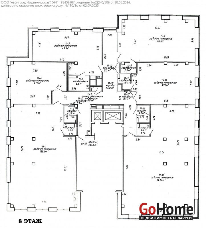 - располагается на 7,8/9 этажах административного здания (два изолированных этажа);