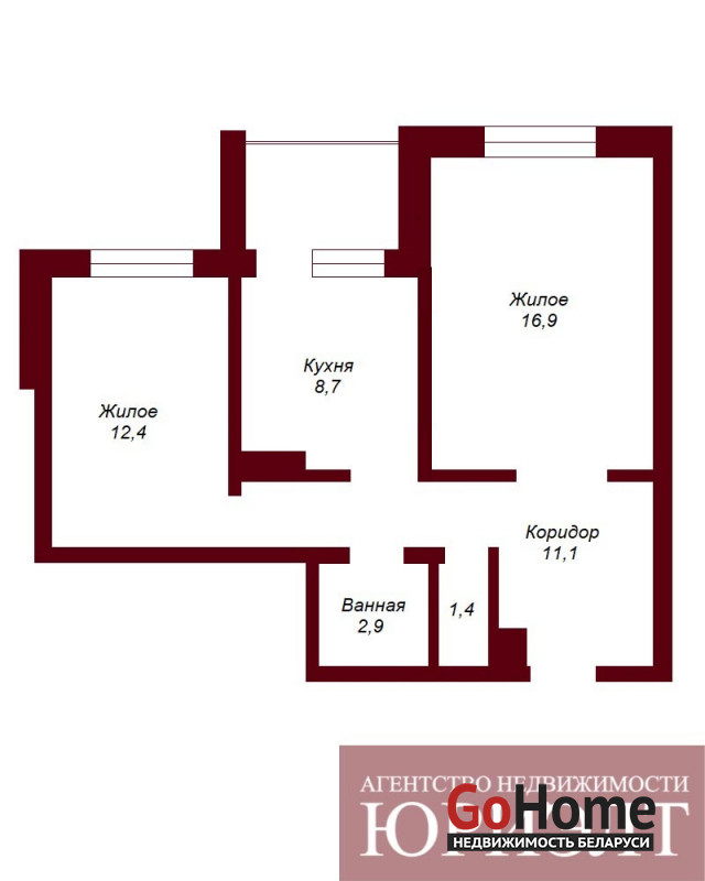 Общая площадь: 56,1 кв.м., жилая - 29,3 кв.м., кухня 8,7 кв.м.