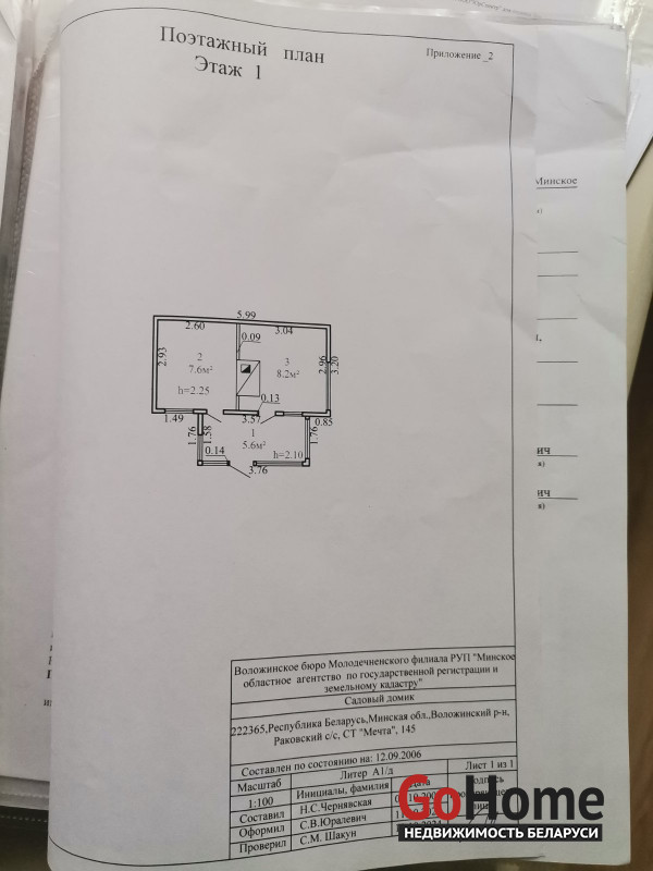 Описание: одноэтажный садовый домик, общей площадью 21,4 кв. м, две комнаты (по 8 кв. м. ), кухня-веранда (6 кв.м ), веранда. Входная дверь деревянная, межкомнатные деревянные, окна деревянные, пол –доска, стены – обои, печным отоплением не пользовались – используем обогреватель. В доме имеется подвальное помещение и чердак. Крыша –шифер.