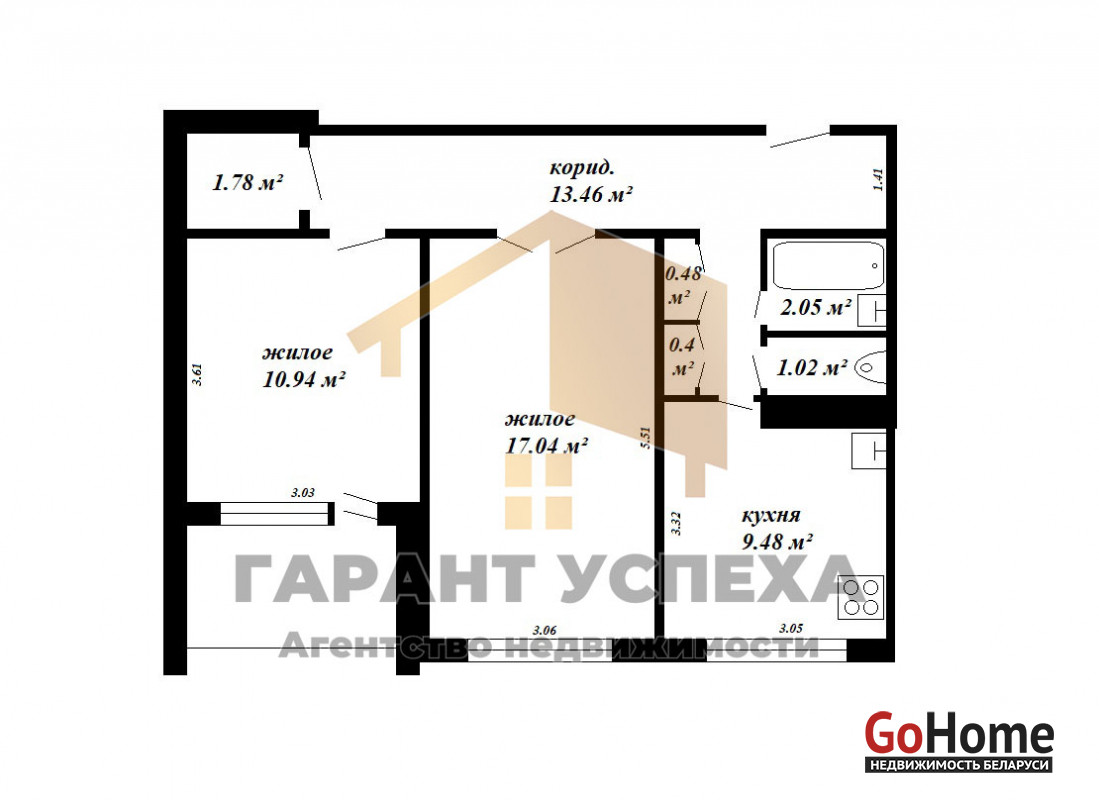 ЧУП «Гарант успеха», УНП 290472700, лицензия №02240/137 от 20.10.2006 г., договор на оказание риэлтерских услуг №513/1 от 10.09.2025 г.