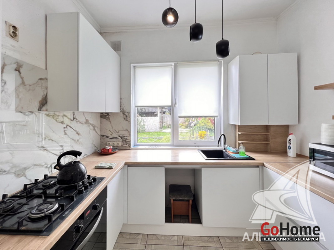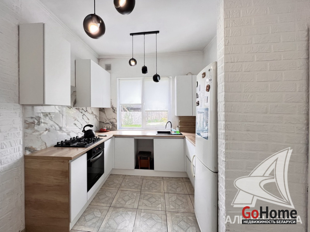 Жилой дом в г.Бресте. 1965 г.п. 1 этаж. Общ.СНБ - 73,0 кв.м, общ.- 73,0 кв.м, жил.- 48,1 кв.м, кух.- 9,9 кв.м. 4 комнаты, высота потолка - 2,84 м.