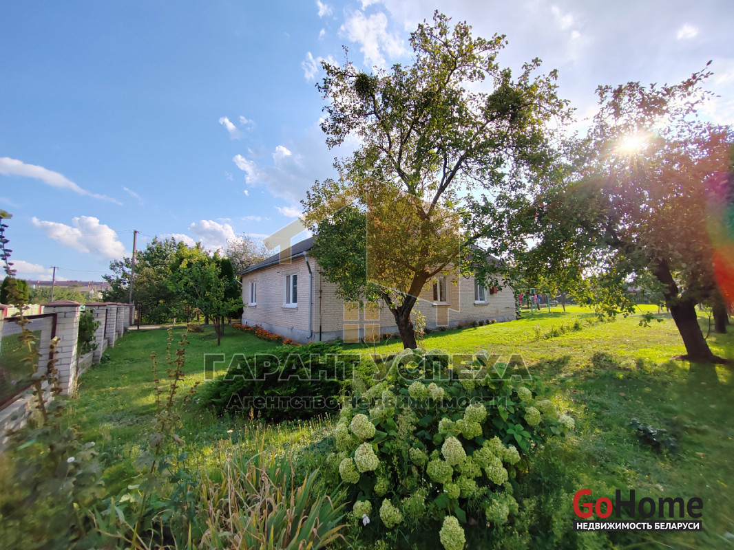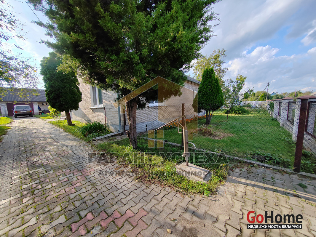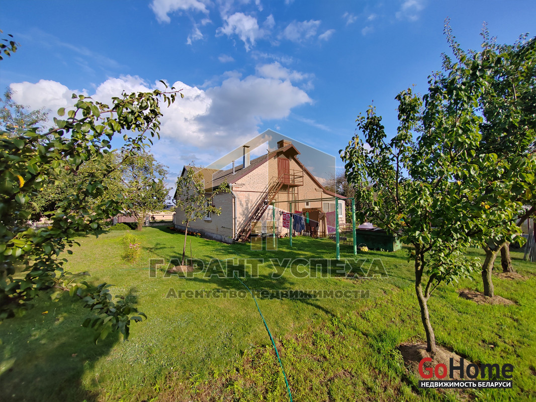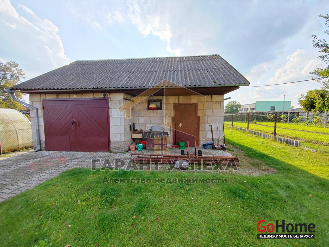На участке, помимо дома, находятся автомобильный гараж с небольшой ямой, хозяйственные постройки и уличный туалет. Территория ухожена: перед домом и гаражом уложена тротуарная плитка, а на изумрудном газоне наряду с декоративными растениями растут три вида белорусских сортовых яблонь, сортовые абрикосы и множество ягодных кустарников. Виноградная лоза вьется не только перед домом, но и ровными рядами высажена с тыльной стороны участка. Там же предусмотрена отдельная зона для огородничества.