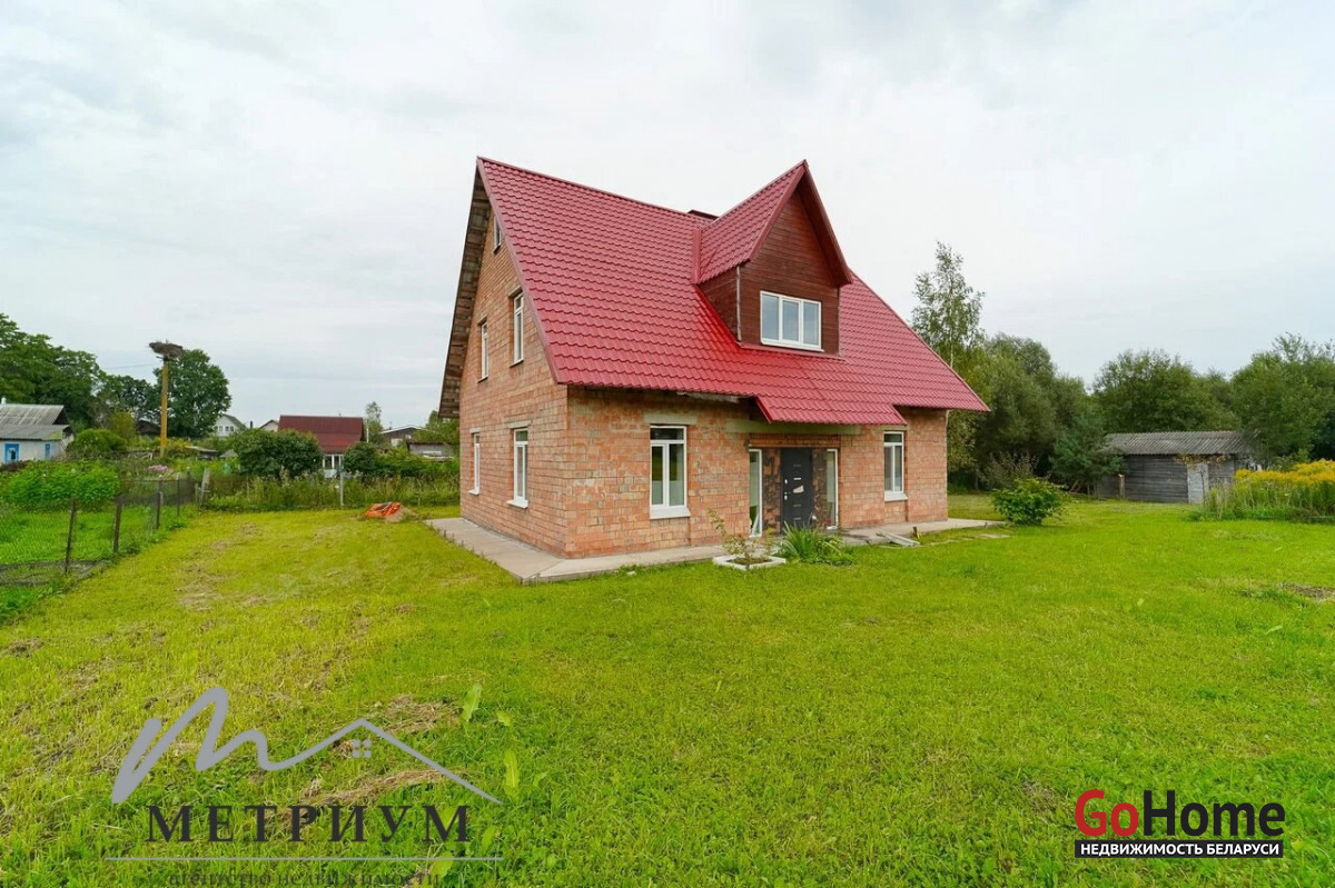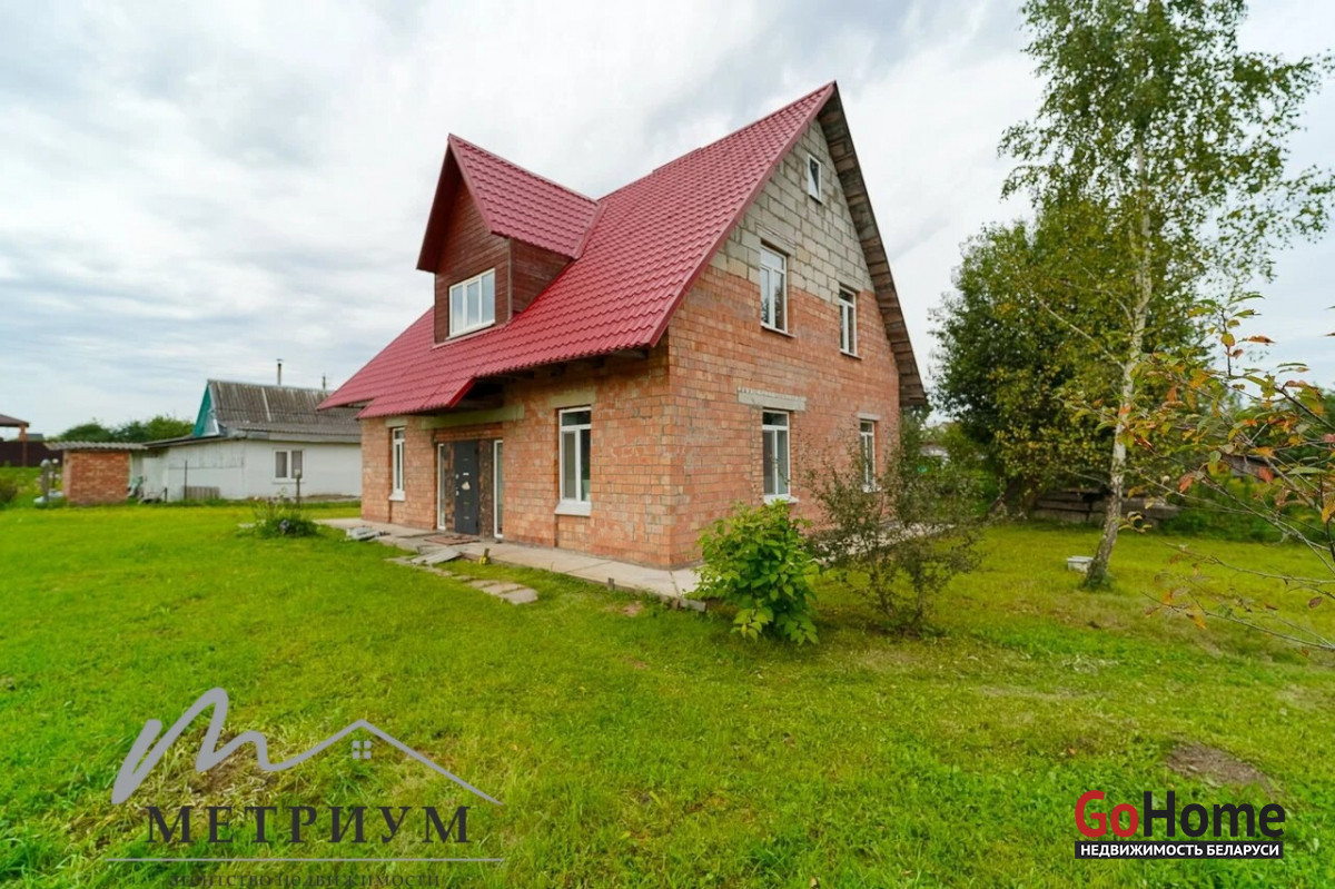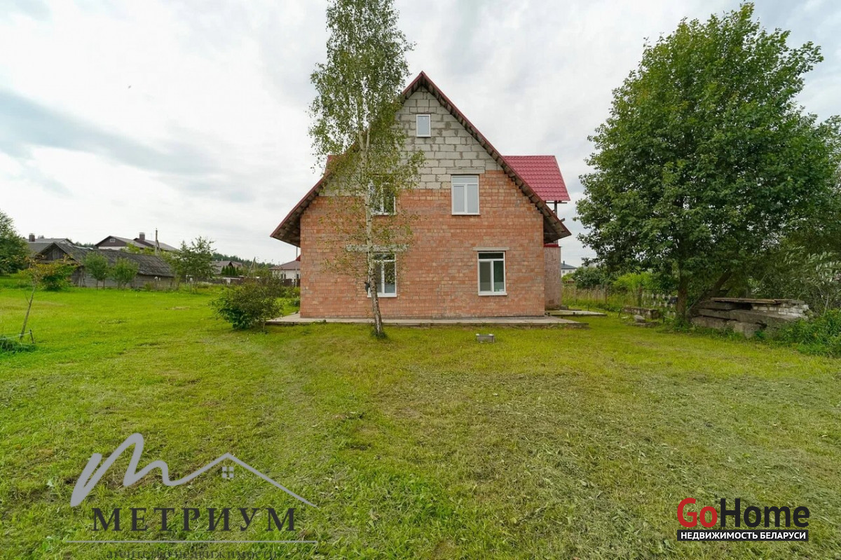 На 24.9 сотках расположен двухэтажный дом 2016 года постройки, общей площадью 98.2 м2, жилая площадь - 56 м2 и кухней 11.8м2. Дом кирпичный, высокая крыша, которая позволяет сделать полноценный второй этаж. Крыша – металлочерепица, стойкая перед воздействиями внешних факторов и устойчивая к перепадам температур, что гарантирует прочность и долговечность. Прекрытия – бетон. Окна – современные стеклопакеты. Водоснобжение - скважина, введена в дом. Канализация – местная, введена в дом. Электричество - введено в дом. Есть разрешение на отопление электричеством.