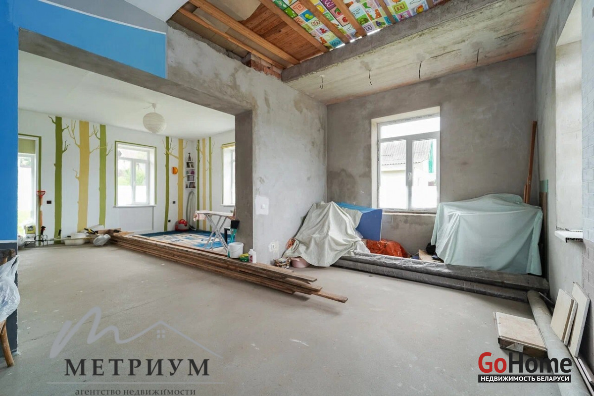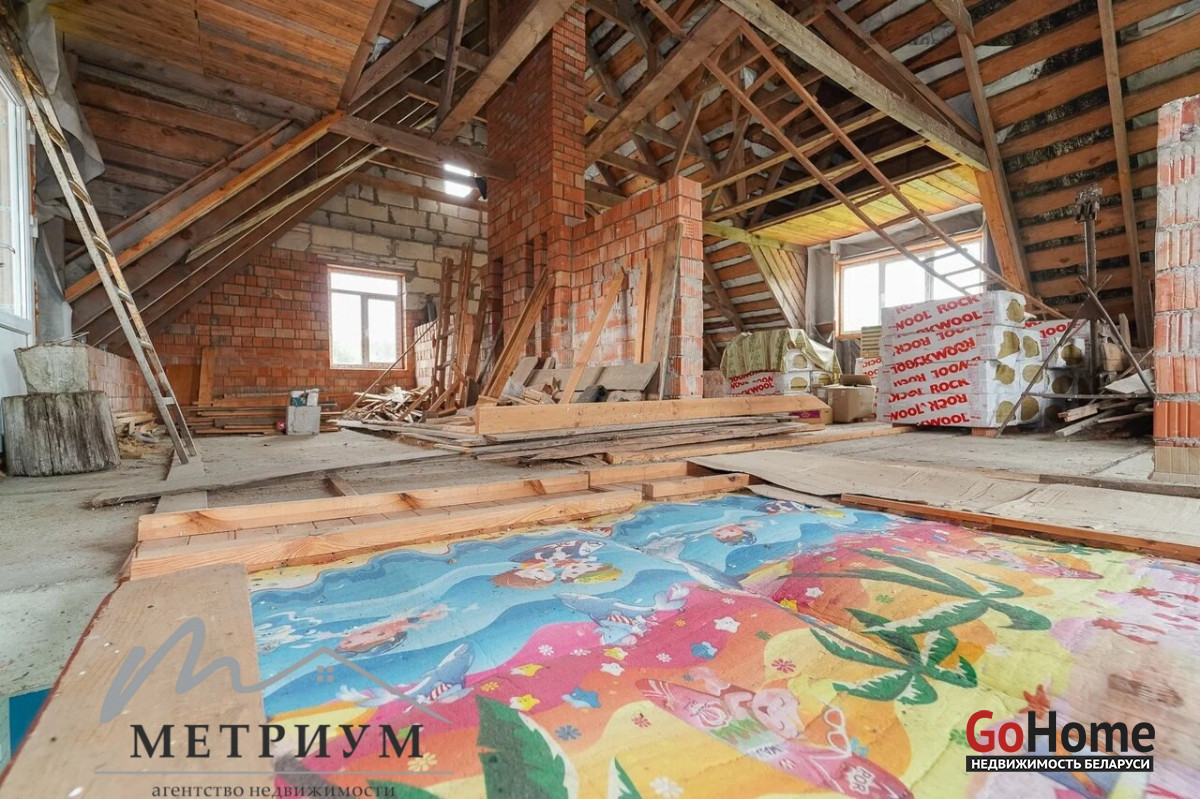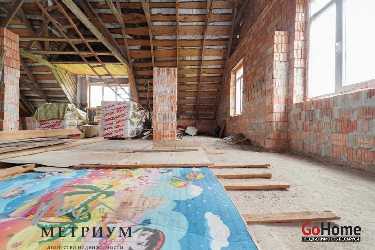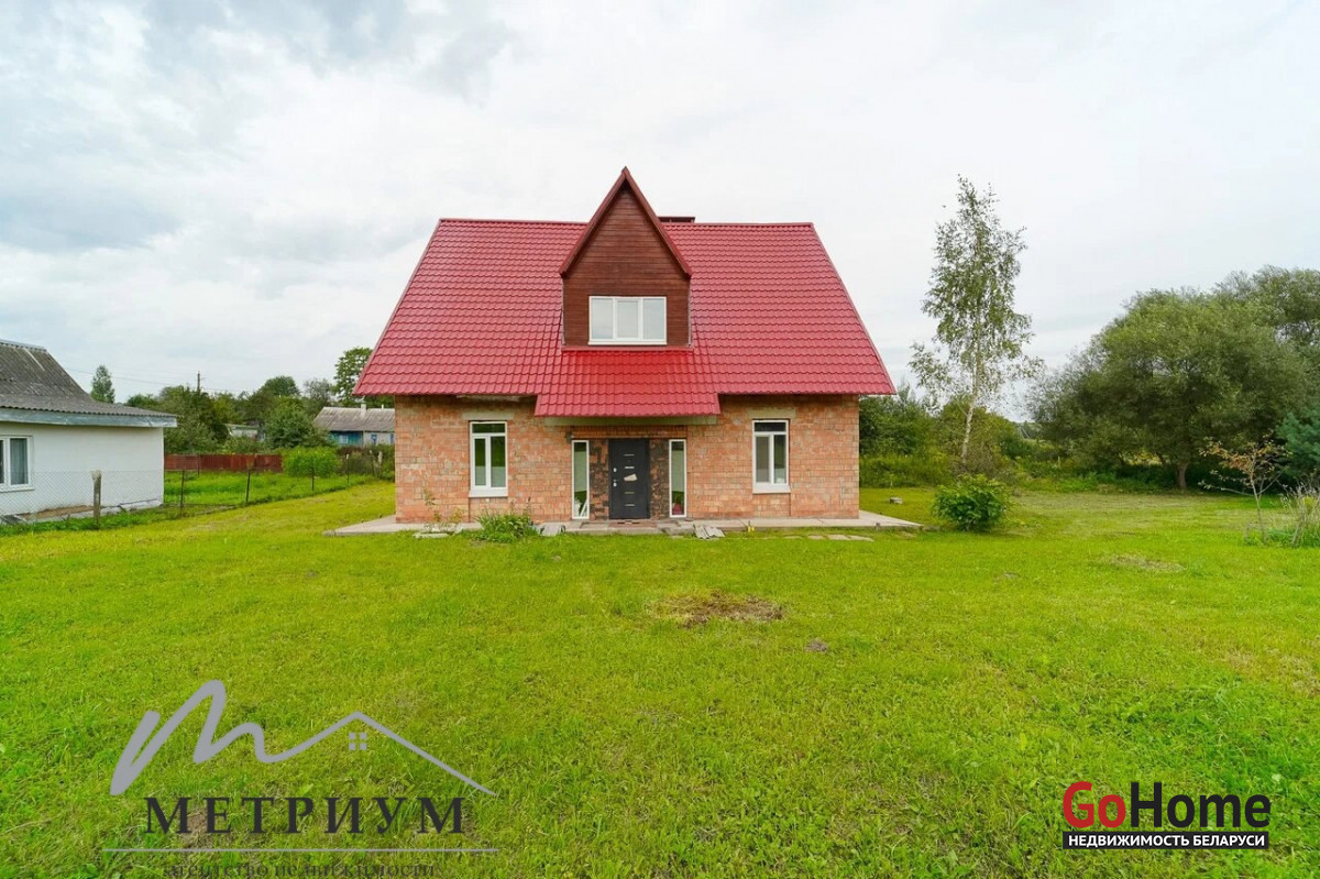 На 24.9 сотках расположен двухэтажный дом 2016 года постройки, общей площадью 98.2 м2, жилая площадь - 56 м2 и кухней 11.8м2. Дом кирпичный, высокая крыша, которая позволяет сделать полноценный второй этаж. Крыша – металлочерепица, стойкая перед воздействиями внешних факторов и устойчивая к перепадам температур, что гарантирует прочность и долговечность. Прекрытия – бетон. Окна – современные стеклопакеты. Водоснобжение - скважина, введена в дом. Канализация – местная, введена в дом. Электричество - введено в дом. Есть разрешение на отопление электричеством.