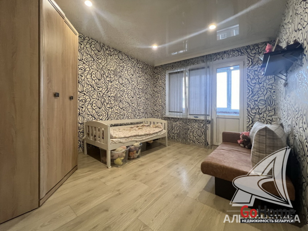 Доля (5/6) в 3-комнатной квартире, г. Брест, ул. Куйбышева, 1979 г.п., 9 / 9 панель, 74,1 / 69,2 / 40,6 / 9,61, санузел раздельный, две лоджии, стеклопакеты, деревянные межкомнатные двери и экошпон (в ванне, в туалете), входная дверь металлическая, потолки - снежка (в гостиной, в спальне) и натяжные - сатин (в кухне, в спальне), полы - линолеум, стены оклеены обоями (в комнатах) и фактурная штукатурка (в кухне, в коридоре), чугунная ванна, заменены сантехнические трубы, домофон. Кухонный гарнитур, газовая плита. Квартира в жилом состоянии. Один грузопассажирский лифт. Хорошо развитая инфраструктура, в шаговой доступности остановки общественного транспорта, школы, сады, магазины, кафе. Лот - 251735
