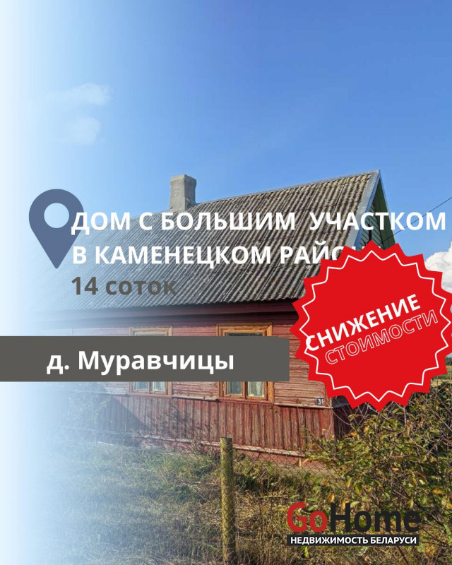 Подписывайтесь на наш instagram @ecrzby для удобного слежения за новыми актуальными объектами.Продаётся деревянный дом в деревне Муравчицы, построенный в 1955 году. Общая площадь здания составляет 56,7 кв.м., из которых жилая площадь — 22,8 кв.м., кухня — 17,0 кв.м., кладовая — 7,0 кв.м., также имеются коридор и веранда. Кровля выполнена из шифера. Отопление в доме печное, есть электричество и водоснабжение от скважины. Участок земли составляет 14 соток под домом и 25 соток под личное подсобное хозяйство (ЛПХ).
