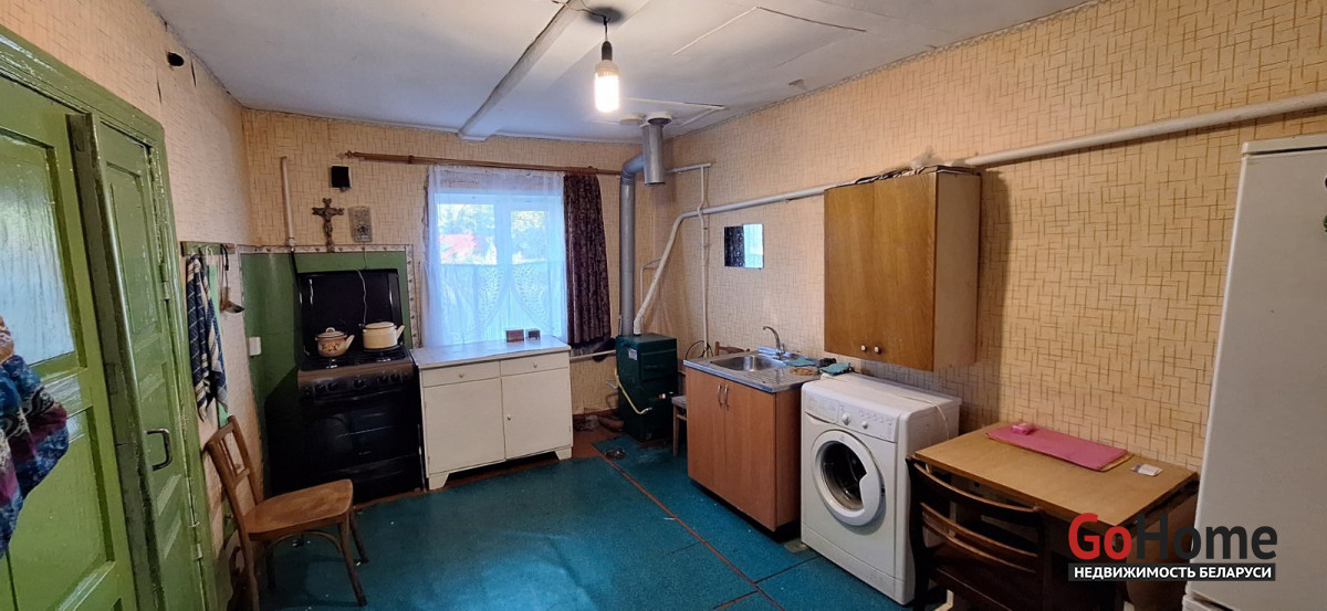 Дом деревянный 1957 года постройки обложен кирпичем, в 2011 году перекрыта крыша (шифер). Большая комната 25,5 м.кв. , кухня 13,5 м.кв. Плита газовая. Летняя веранда 14 м.кв. Окна частично ПВХ, отопление газовое, водоснабжение централизованное, электроснабжение есть. Большой кирпичный погреб (сухой).