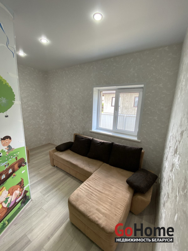 Дом состоит из 4 изолированных комнат, кухни-гостиной. Просторный совмещенный санузел, так же есть помещение для организации второго с/у. Отделка выполнена в современном стиле. Полы керамогранит, в спальнях - ламинат. Камин. Есть 2 террасы: открытая и закрытая. Продаётся с мебелью.