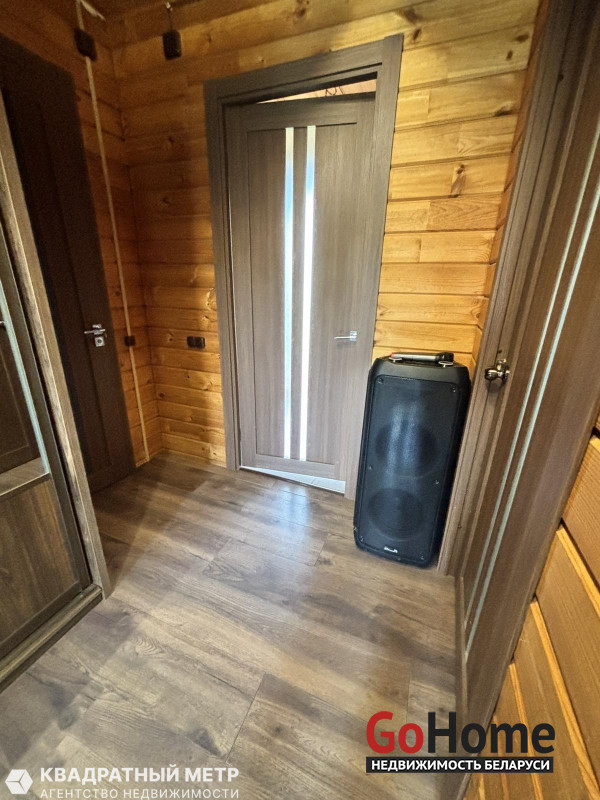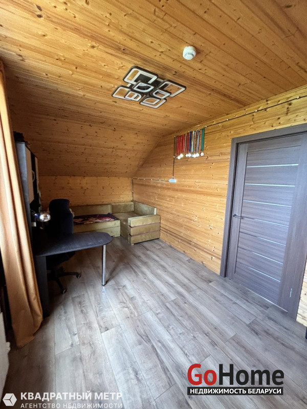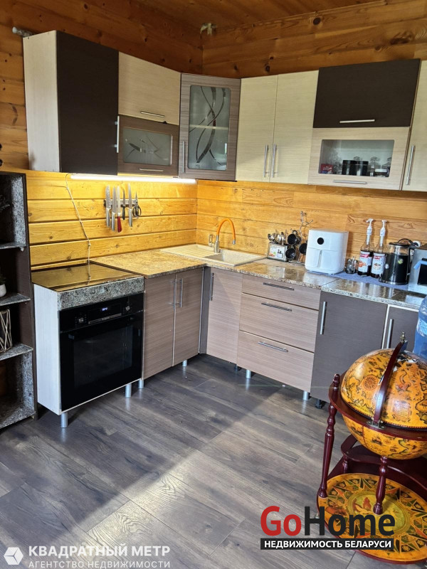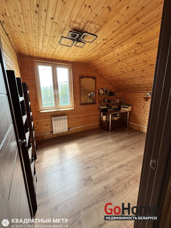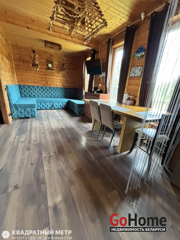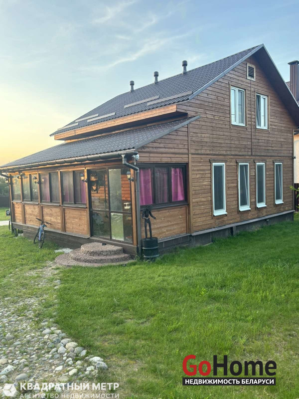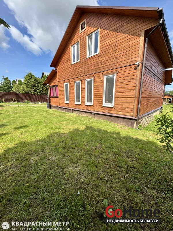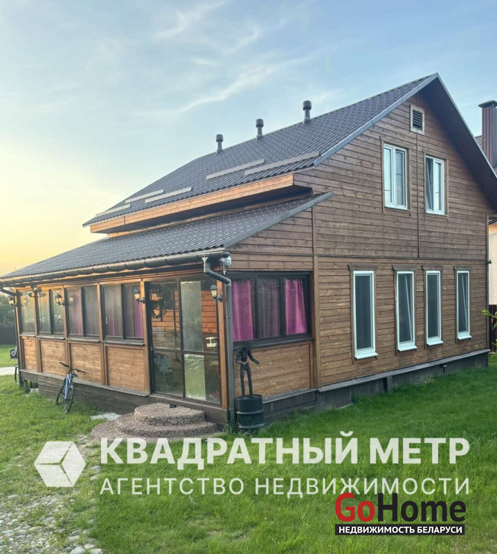 Дом из бруса площадью 138.9 м2, на 1 этаже - большая гостинная с кухонным оборудованием и выходом на терассу, жилая комната, топочная, санузел. Высота потолков - 2.62см на первом этаже и 2.42см на втором. Полы - ламинат и плитка , с подогревом по периметру всего этажа. На втором этаже 3 изолированные комнтаты, санузел. гардеробая. Установлены радиаторы. Качественные двухкамерные окна ПВХ. Крыша - мет.черепица Канализация переливная 3 колодца, газ разведен, оптоволокно.