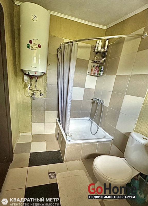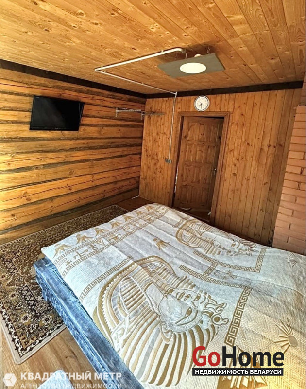 В доме четыре комнаты (гостиная с кухней, три спальни). Санузел 4,8 кв. м оборудован душевой, умывальником, туалетом, бойлером для подогрева воды, стиральной машиной.
