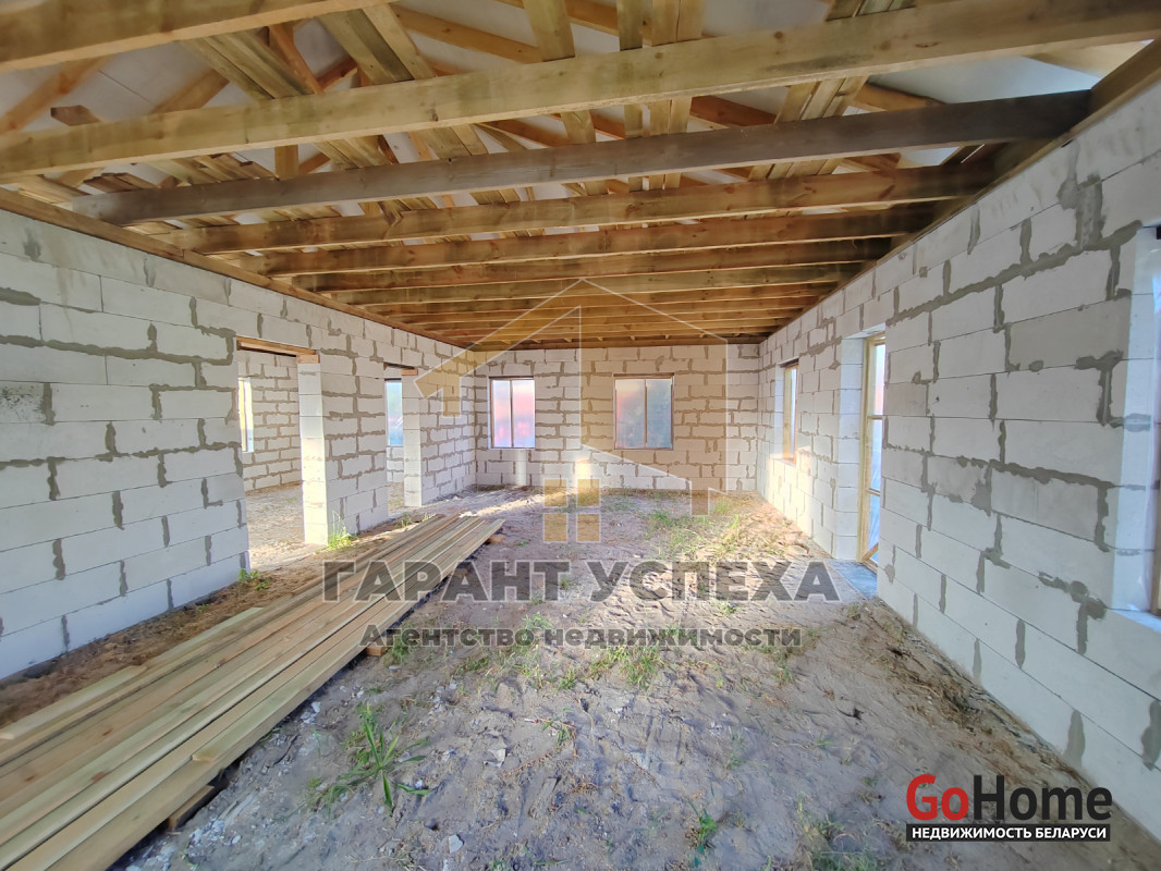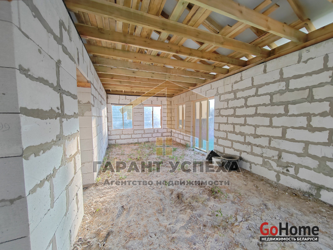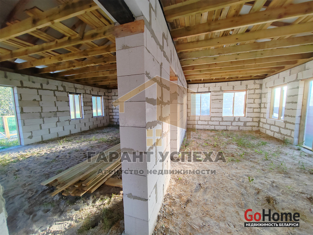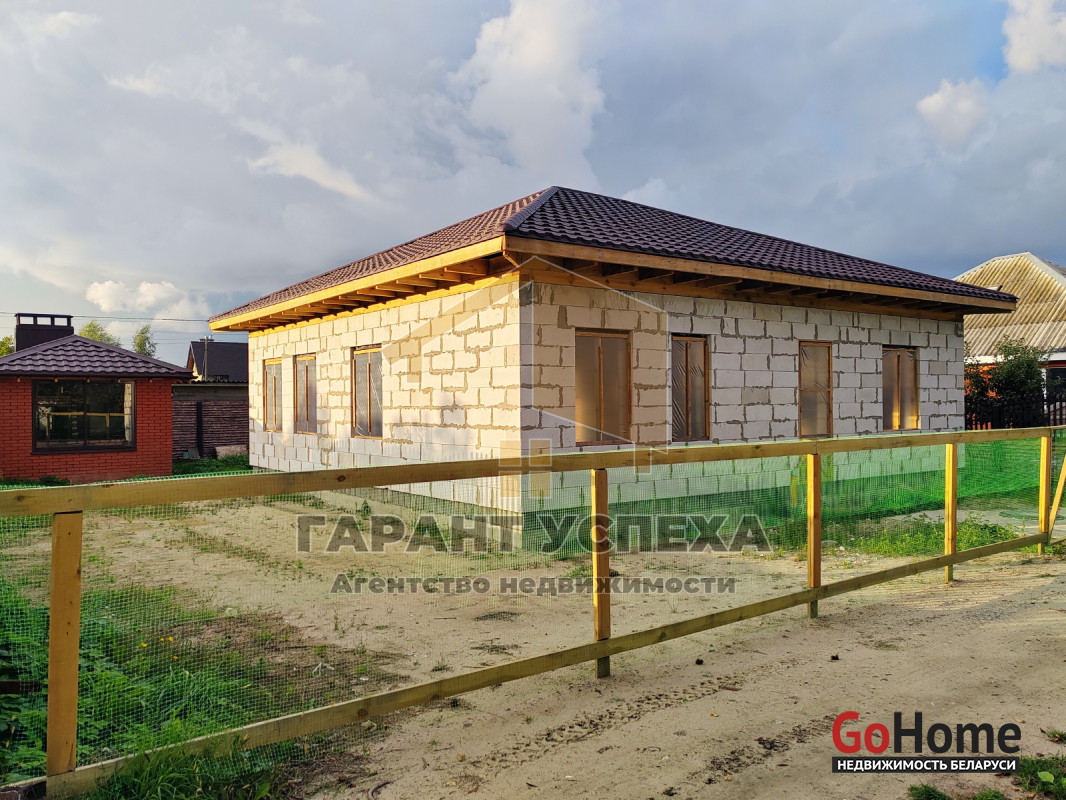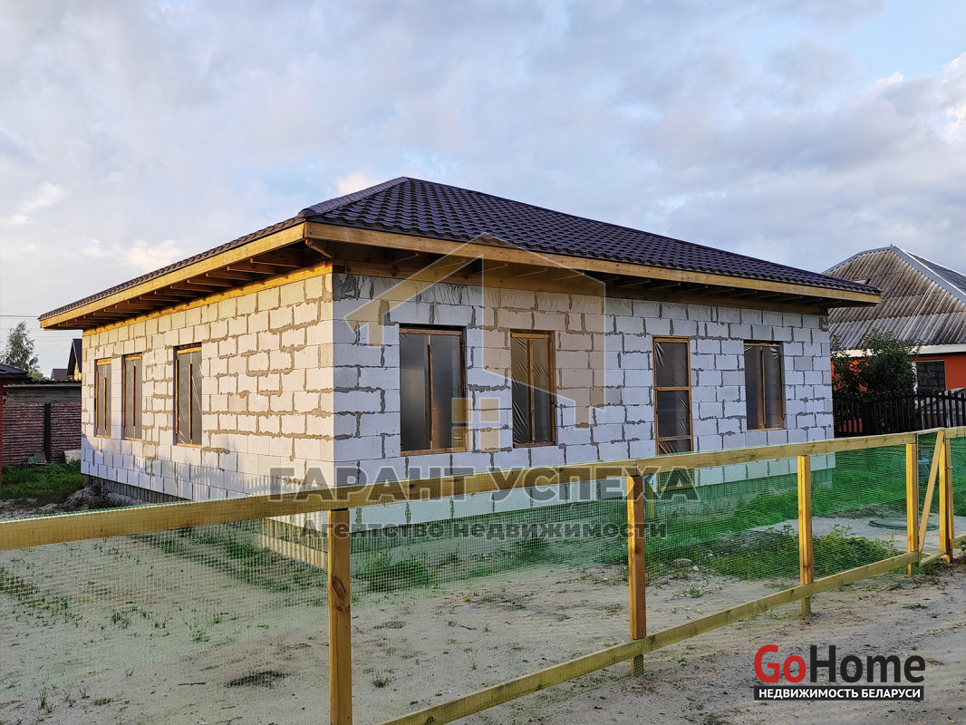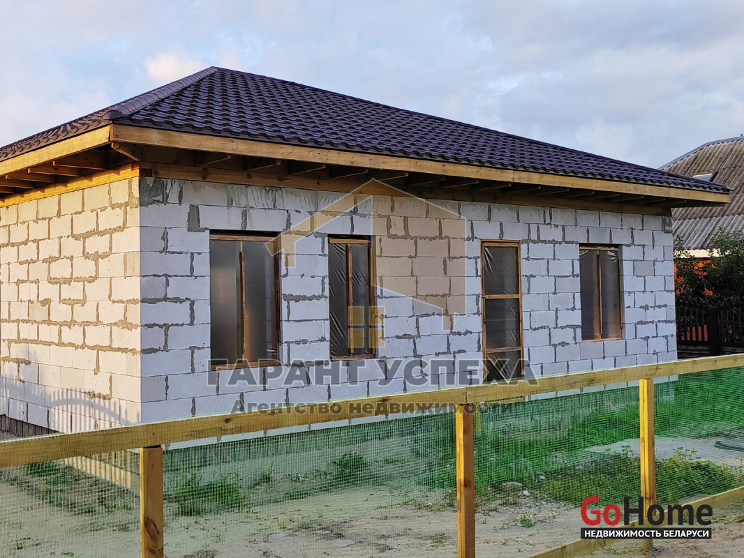 Здание общей площадью 110 кв.м имеет ленточный монолитный фундамент, стены выведены из газосиликатных блоков, вальмовая кровля накрыта металлочерепицей. Перегородки выполнены из газосиликатного блока.