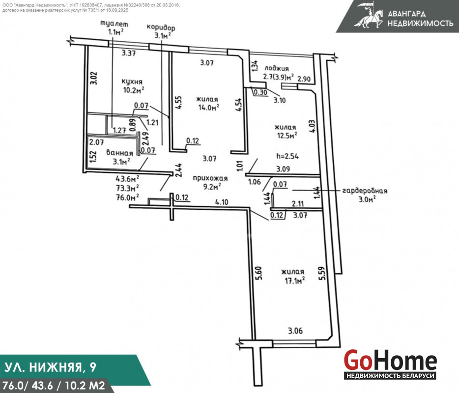 Дом панельный 2021 года постройки. Квартира находиться на 2 из 5 этажей. Максимально удобно при переезде и ежедневной жизни. Площадь по СНБ 76 м2. Жилая площадь 43,6 м2. Три раздельные комнаты площадью 17,1 м2,14м2 и 12,5 м2. Большая кухня 10,2 м2. Раздельный сан/узел, удобно при утренних сборах. Просторная прихожая 9,2 м2 и коридор 3,1 м2, при необходимости можно установить шкаф купе. По проекту в квартире есть гардеробная площадью 3 м2, для хранение личных, хозяйственных и домашних вещей. Застекленная лоджия 3,9м2. Высота потолка 2,54 м. Тамбур на 2 квартиры.