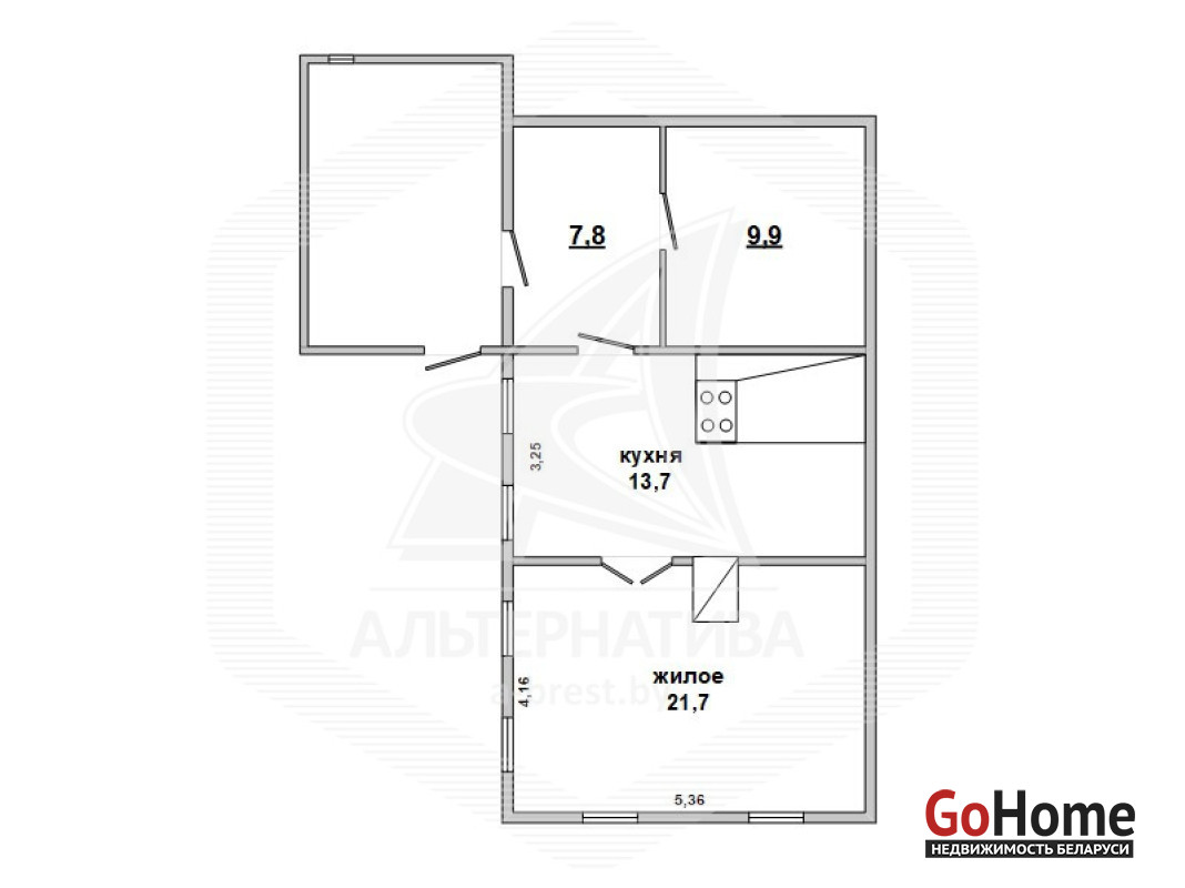 Жилой дом в Каменецком р-не. 1 этаж. Общ.СНБ - 53,1 кв.м, общ.- 35,4 кв.м, жил.- 21,7 кв.м, 2 комнаты.