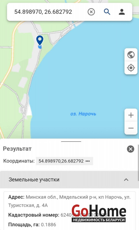 В аг.Нарочь, село Степенево ул. Туристская, в одном из самых лучших мест Беларуси - курортной зоне возле озера Нарочь.