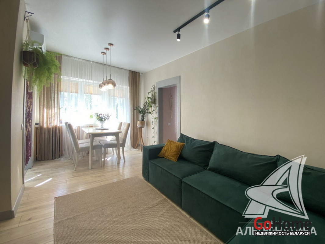 2-комнатная квартира, г. Брест, наб. Франциска Скорины, 1963 г.п., 5 / 5 кирпич, 43,6 / 41,5 / 26,0 / 5,9, санузел совмещенный, лоджия застеклена и балкон не застеклен, стеклопакеты, межкомнатные двери - массив, входная дверь металлическая, потолки с разноплановой системой освещения - 2,5 м, полы (положены на сухопрессованную стяжку) - ламинат, в санузле современная плитка, заменена сантехника, заменен полотенцесушитель, заменены сантехнические трубы, инсталляция, душевая кабина, проведена новая электропроводка, установлены новые радиаторы, новый электросчетчик, кондиционер, телефон, домофон. Кухонный гарнитур, оборудован кабинет (на лоджии). Квартира с хорошим ремонтом. Чистый подъезд. Есть технический этаж. Капитальный ремонт дома. Лот - 251763
