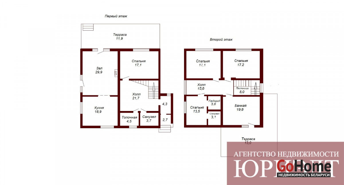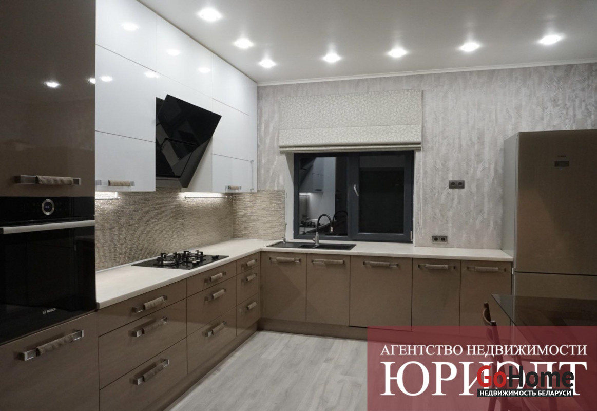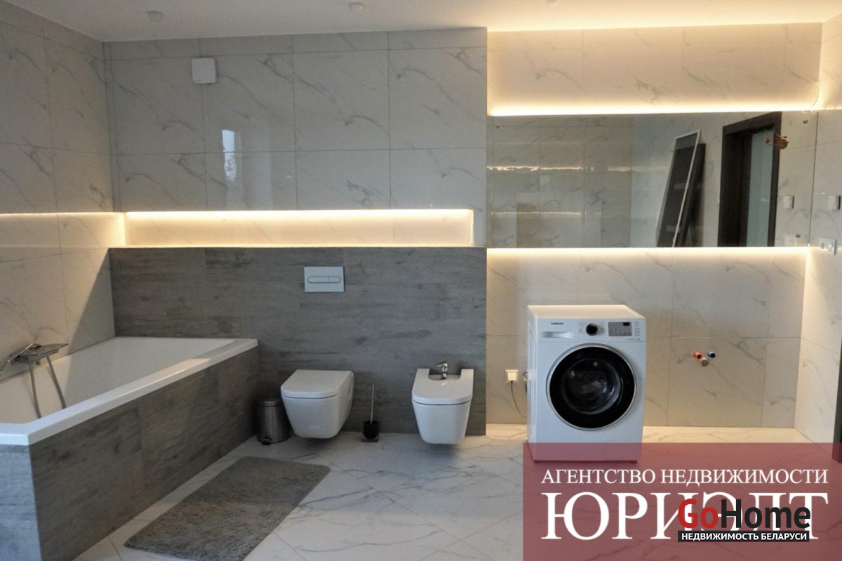 Коммуникации центральные: электричество, газоснабжение, водоснабжение-скважина, канализация-септик. Общая площадь дома 190,3м2, жилая (4 спальни) – 64,9м2, кухня – 18,9м2, гостиная- 29,9м2, 2 санузла, ванная. Есть вспомогательные помещения: топочная, гардеробная.