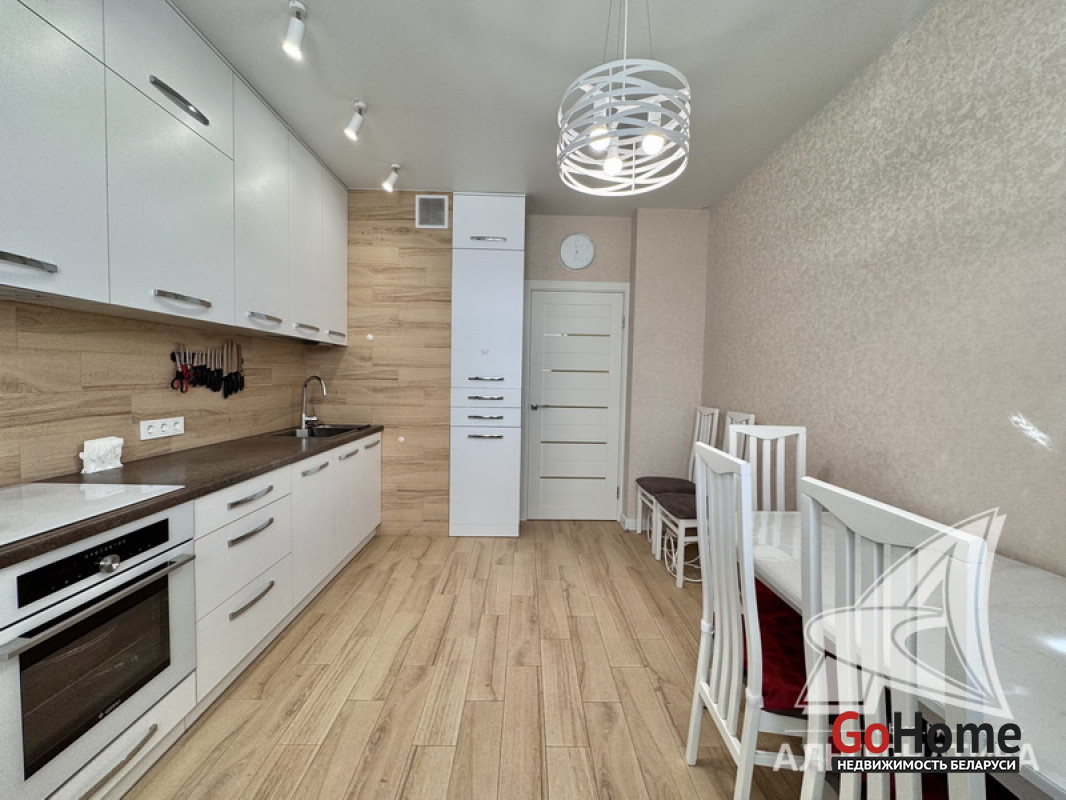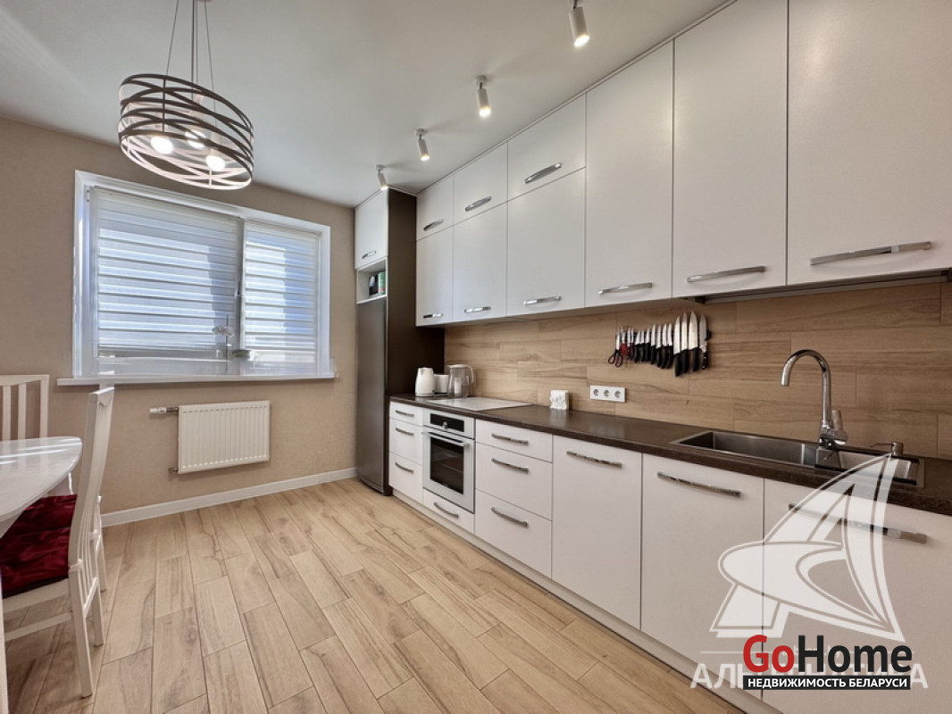 3-комнатная квартира, г. Брест, ул. Махновича, 2020 г.п., 2 / 15 блок + кирпич, 79,6 / 77,4 / 41,2 / 12,5, санузел раздельный, лоджия застеклена, стеклопакеты, межкомнатные двери - экошпон, входная дверь металлическая, одноуровневые натяжные потолки с разноплановой системой освещения - сатин (2,7 м), полы - (положены на стяжку) - ламинат (Egger 34 класс) и плитка (в кухне, в прихожей), стены оклеены обоями и фактурная штукатурка (на лоджии), в санузле современная плитка, акриловая ванна, заменены сантехнические трубы (пластик), душевая кабина, домофон, система видеонаблюдения. Кухонный гарнитур, шкаф-купе (в спальне), варочная поверхность, вытяжка, духовой шкаф, посудомоечная машина, мебель (в ванной), система хранения (в гардеробной). Квартира с хорошим ремонтом. Квартира расположена на две стороны. Чистый подъезд. Пассажирский и грузовой лифты. Во дворе игровая детская площадка, парковка для автомобилей. Лот - 251767