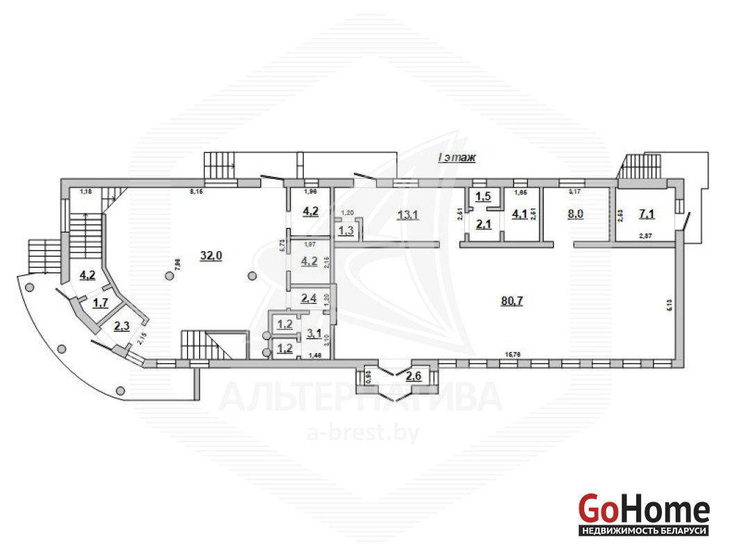 Здание детского кафе с магазином в собственность в городе Кобрин Брестской области общей площадью 398 кв.м, расположенное на земельном участке площадью 0,0546 кв.м. Отдельно стоящее двухэтажное незавершенное законсервированное капитальное строение. Без внутренней отделки. 1 этаж: общая площадь - 178,1 кв.м. Высота потолков - 3,62 м. 2 этаж: общая площадь - 219,9 кв.м. Высота потолков - 3,08 м. Технические характеристики здания: фундамент бетонный, стены блочные, перекрытия - ж/б плиты, крыша - металлопрофиль, окна, двери - ПВХ. Все центральные коммуникации, в т.ч. собственная газовая котельная. Земельный участок площадью 0,0546 га предоставлен собственнику в аренду для строительства и обслуживания детского кафе со встроенным магазином. Рассматриваются все варианты. Лот - 251740
