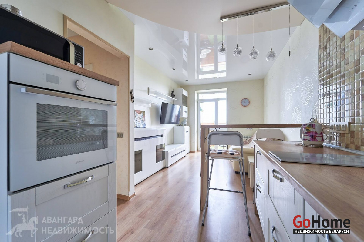 В квартире выполнен отличный, современный ремонт, она полностью готова к проживанию. Хорошая инфраструктура: в шаговой доступности находится большой продуктовый магазин, детский сад, школа, поликлиника. Рядом с домом находятся хорошо оборудованный фитнес клуб ,кафе.