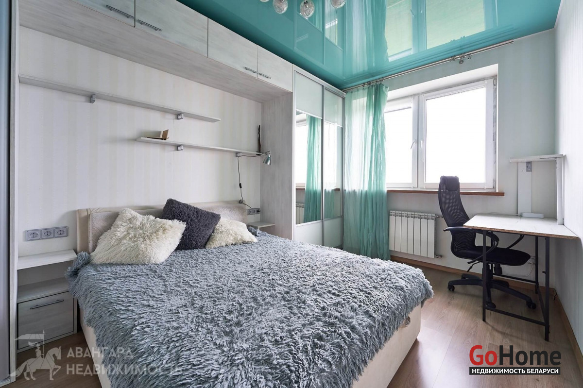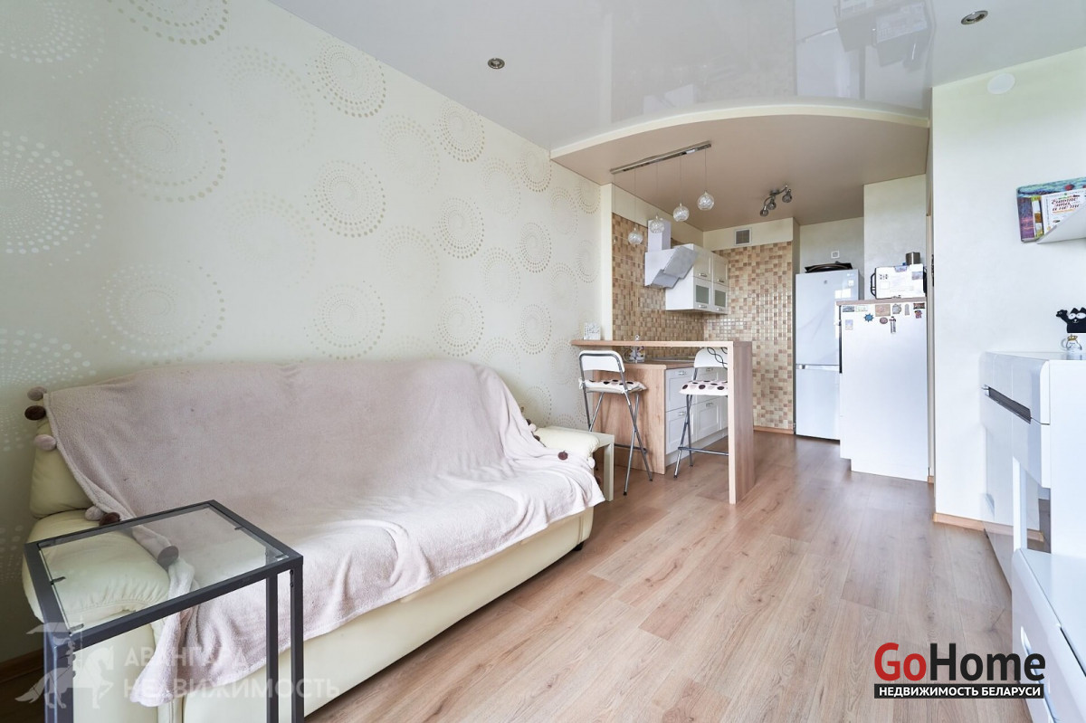 Сдается уютная квартира на длительный срок. В квартире есть полноценную кухня-гостиная, также имеется изолированная комната с двуспальной кроватью и встроенной системой хранения. Санузел совмещенный. Квартира оснащена мебелью и качественной бытовой техникой: печь СВЧ, духовой шкаф, посудомоечная машина, холодильник, варочная поверхность, стиральная машина, телевизор и встроенный шкаф в коридоре. Установлены стеклопакеты и металлическая входная дверь, утепленная лоджия. Во дворе дома расположена детская площадка.