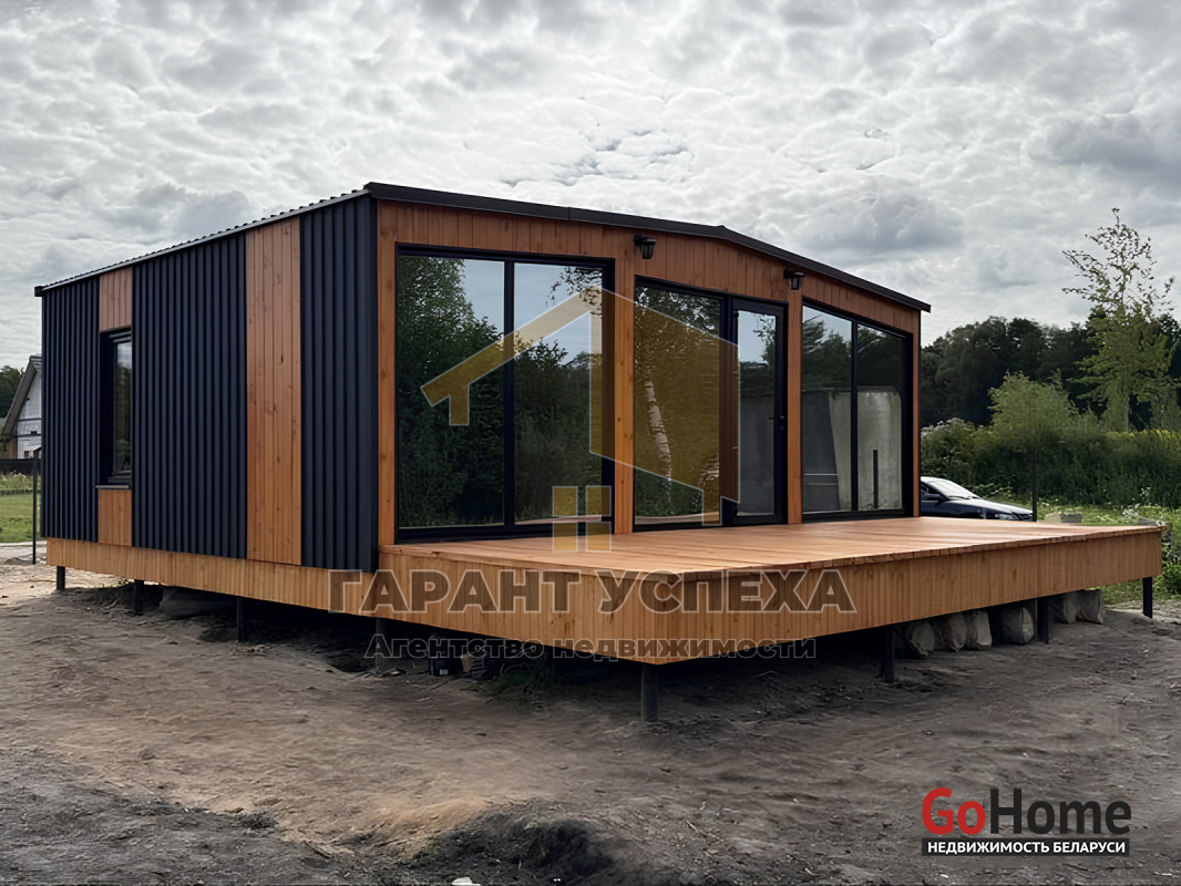 Новый модульный дом на дачном участке в 5 соток недалеко от Бреста ждет нового хозяина. Дом расположен в тихом живописном месте, рядом нет соседей, отличный вид из окон, большая терраса.