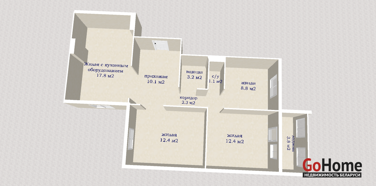 3 изолированные жилые комнаты, все стены выровнены, окрашены.