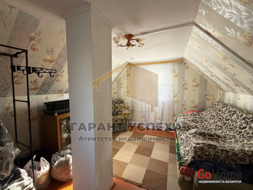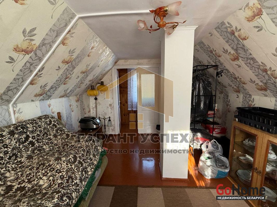 Мансардный дачный домик. Фундамент - ленточный бетонный монолитный. Кровля - волновой шифер. Стены - каркасно-засыпные, утеплённые пенопластом и обшитые сайдингом цвета слоновой кости. Сделана новая отмостка из плитки. К дому примыкает просторная терраса, декорированная деревом. На террасу подведена тёплая вода через 15 литровый бойлер косвенного нагрева воды. В доме на первом этаже находятся две жилые комнаты, кухня и прихожая. На втором этаже расположена жилая комната, площадью 13 кв.м. Подъем на второй этаж осуществляется по лестнице из массива.