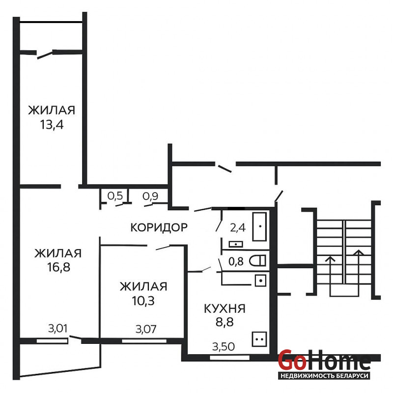 Продается 3-комнатная квартира в городском поселке Свислочь Пуховичского района Минской области, примерно в 30 км от МКАД.