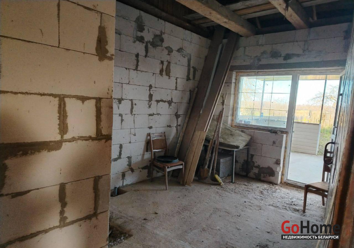 К дому подведен газ, осталось только сделать разводку по дому. В доме имеется совмещенный санузел, выведена вся разводка под сантехнику. В доме все окна ПВХ, входная дверь металлическая, дверь на террасе пвх. По всему дому залита стяжка. Внутри дома остался стройматериал для внутренней отделки. На чердаке мусора нет, стропила крепкие.