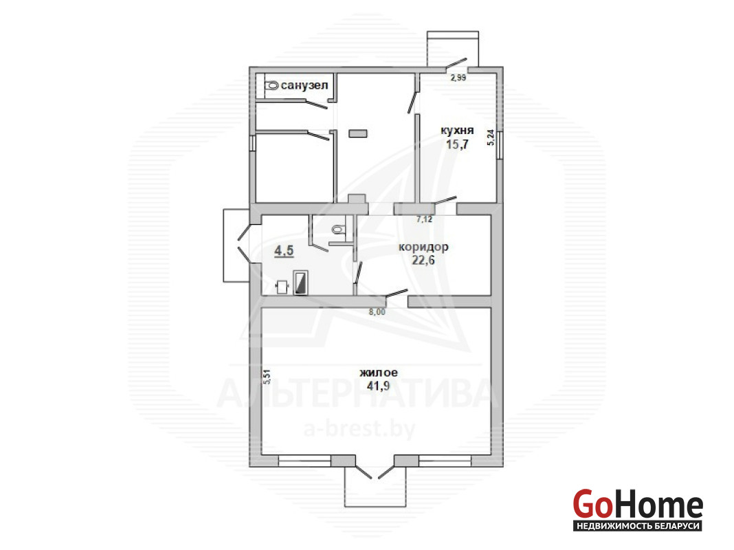 Коробка жилого дома в Брестском р-не. 1965 г.п. 1 этаж. Общ.СНБ - 119,2 кв.м, общ.- 119,2 кв.м, жил.- 74,6 кв.м, кух.- 15,7 кв.м. 3 комнат.