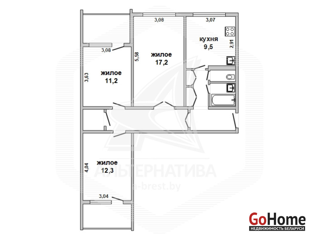 3-комнатная квартира, г. Брест, пр-т Партизанский, 1975 г.п., 7 / 9 панель, 74,1 / 69,2 / 40,7 / 9,5, санузел раздельный, две лоджии, стеклопакеты, деревянные межкомнатные двери и шпон, входная дверь металлическая, потолки - из гипсокартона (в коридоре), полы - ДСП, ламинат (в двух комнатах) и плитка (в коридоре, в кухне), стены оклеены обоями, в санузле современная плитка, заменена сантехника, заменен полотенцесушитель, заменены сантехнические трубы, душевая кабина, новый электросчетчик, домофон. В квартире частично произведен ремонт. На этаже оборудована кладовая, сушилка. Один грузопассажирский лифт. Во дворе игровая детская площадка, парковка для автомобилей. Лот - 251807