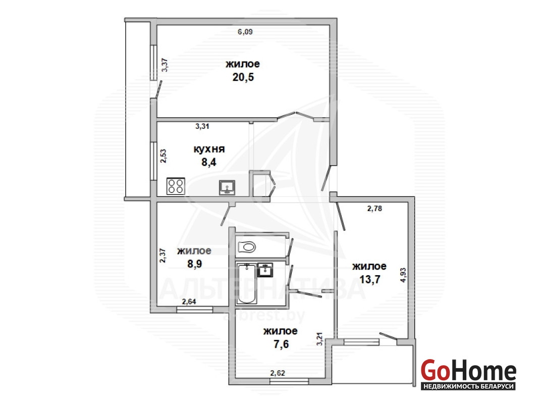 4-комнатная квартира, г. Брест, ул. Кирова, 1987 г.п., 8 / 9 кирпич, 79,8 / 75,3 / 50,7 / 8,4, санузел раздельный, подвал, две лоджии застеклены, стеклопакеты, межкомнатные двери - массив, входная дверь металлическая, потолки (2,5 м) - стекло + дерево, из гипсокартона (в спальне, в детской), натяжные (в детской) и сайдинг (в кухне), полы - ламинат, в санузле современная плитка, стальная ванна, инсталяция (нужно заменить), установлены новые радиаторы (в кухне), домофон. Кухонный гарнитур, стиральная машина, духовой шкаф, плита, вытяжка, шкаф-купе (в спальне), шкаф (в прихожей - 2 шт). Квартира с хорошим ремонтом. Один пассажирский лифт. Во дворе игровая детская площадка, парковка для автомобилей. Лот - 251805