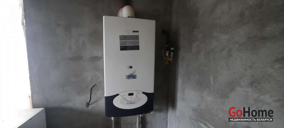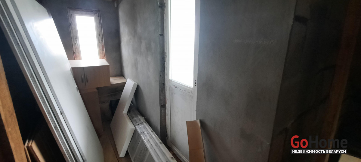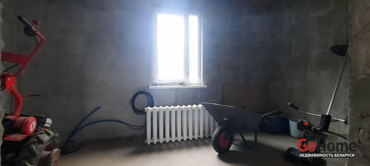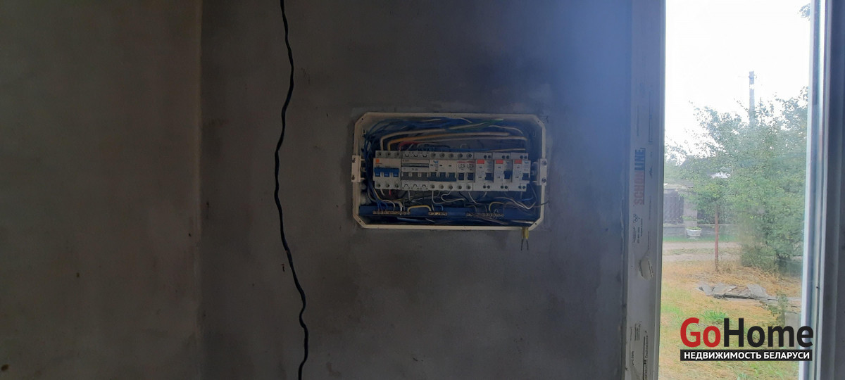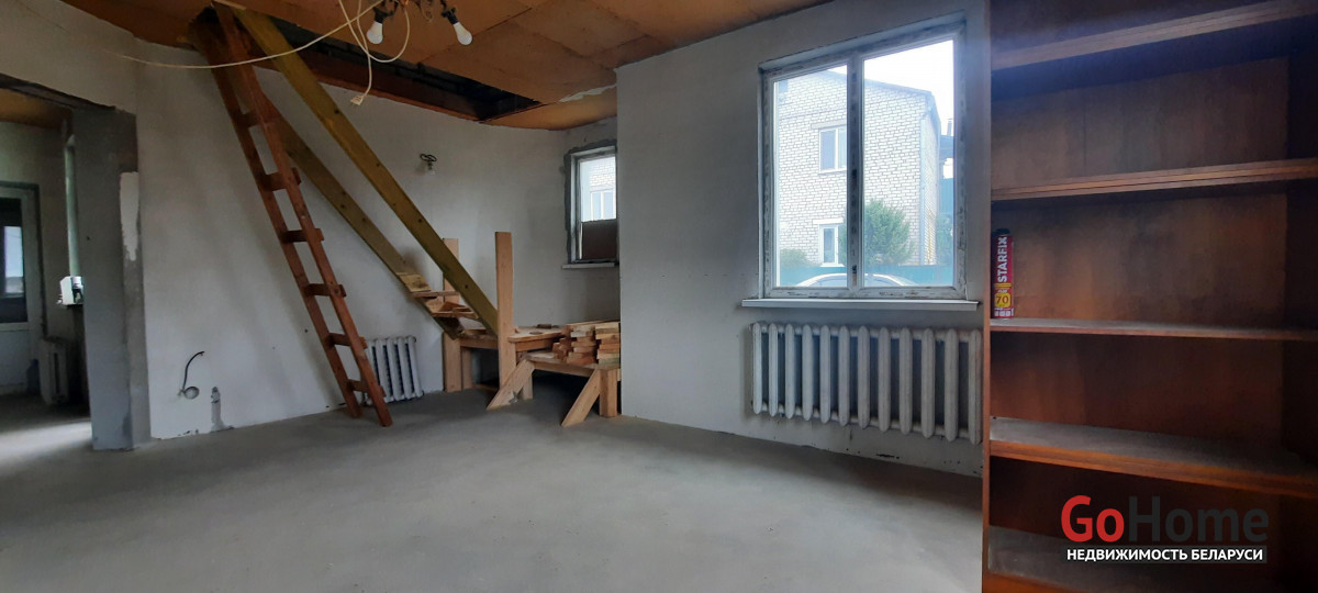 На первом этаже просторная гостиная, кухня 14м2, санузел. установлены стеклопакеты, выполнена стяжка, выровнены и прошпаклёваны стены, установлен новый двухконтурный газовый котел, закуплена керамическая плитка на кухню. На второй этаж ведет деревянная лестница (материалы закуплены), там расположены еще 3 комнаты. Потолки утеплены и подшиты дсп.