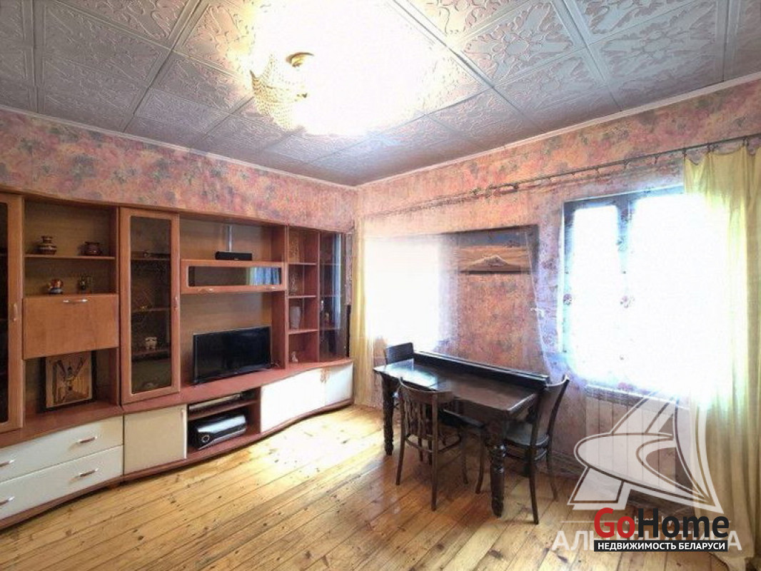 Квартира в блокированном жилом доме в г.Бресте. 1925 г.п. 1 этаж. Общ.СНБ - 74,8 кв.м, общ.- 74,8 кв.м, жил.- 38,8 кв.м, кух.- 19,1 кв.м. 3 комнаты, высота потолка - 2,74 м.