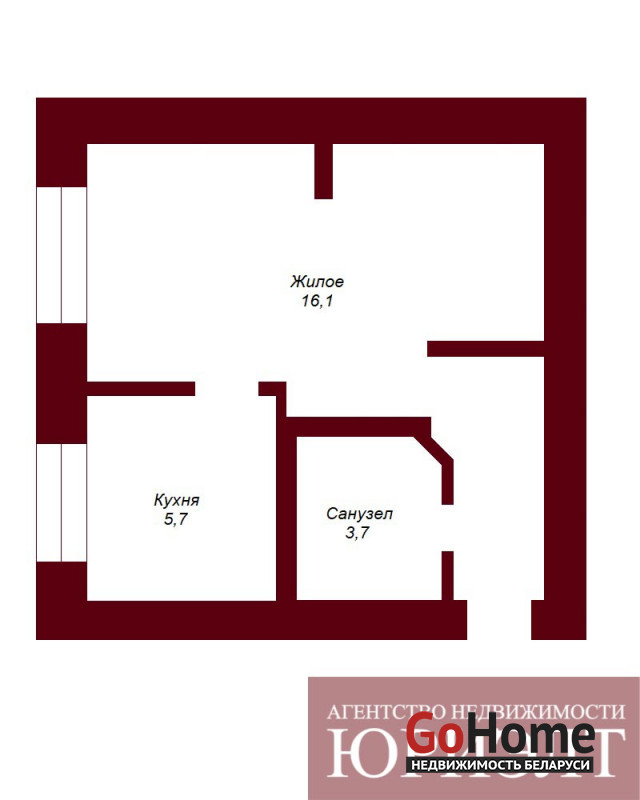 • Просторная комната (16 м²) с продуманной нишей для спальни — удобное решение, создающее атмосферу уюта.