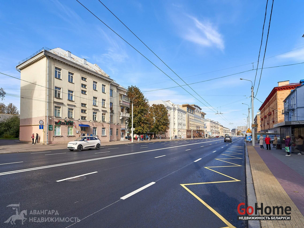 Главное, что вы покупаете не просто «квадратные метры», а частичку истории, воплощенную в уникальном дизайне фасада здания в духе «сталинского» ампира. Место для Минска одно из знаковых, которое всегда в цене. Дом является историко- культурной ценностью, имеет охранный статус.