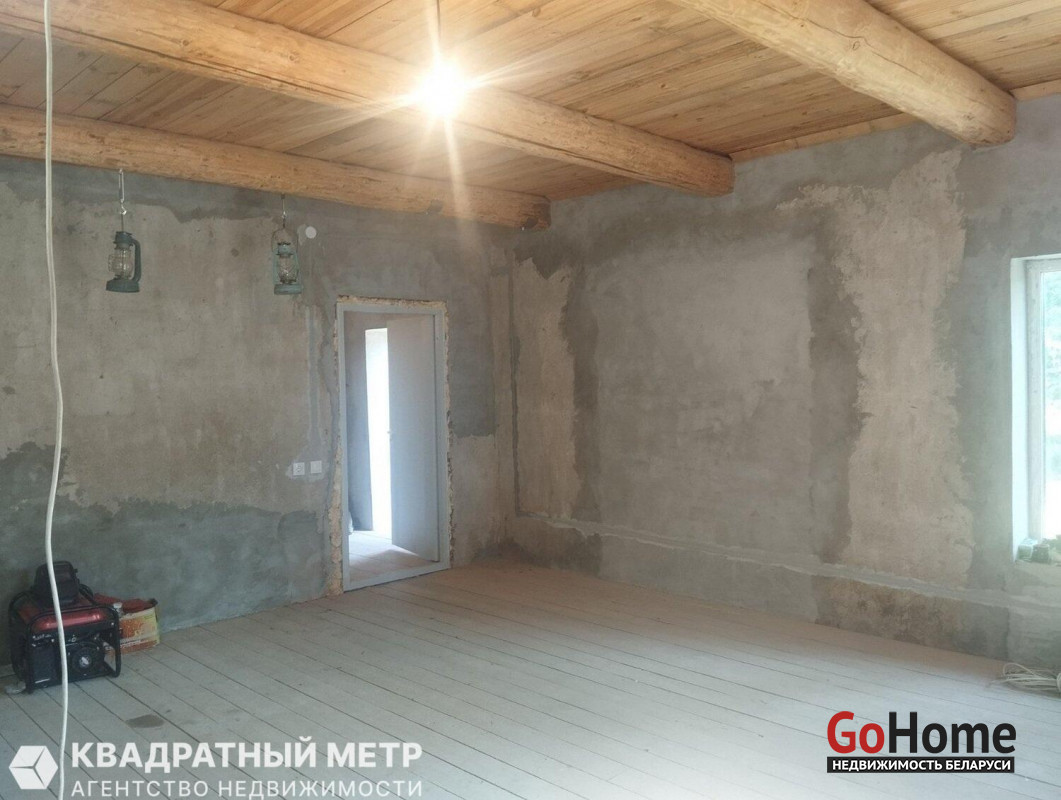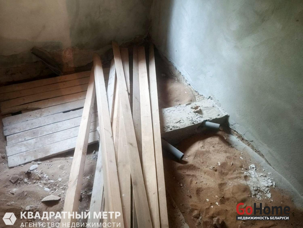 · Кирпичный дом, оштукатурен и окрашен. Под отделку. Фундамент и крыша в хорошем состоянии. Электричество 380 в. Чугунная печь-камин. Местная канализация. Колодец. В доме большая комната 37.9 метров (3 окна, можно разделить на несколько комнат), прихожая, помещения под санузел и кухню. В санузле сделаны выводы для воды и канализации. Стеклопакеты.